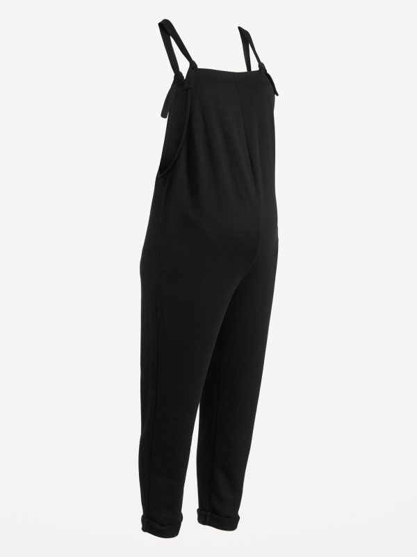 Maternity Knotted-Strap Fleece Overalls