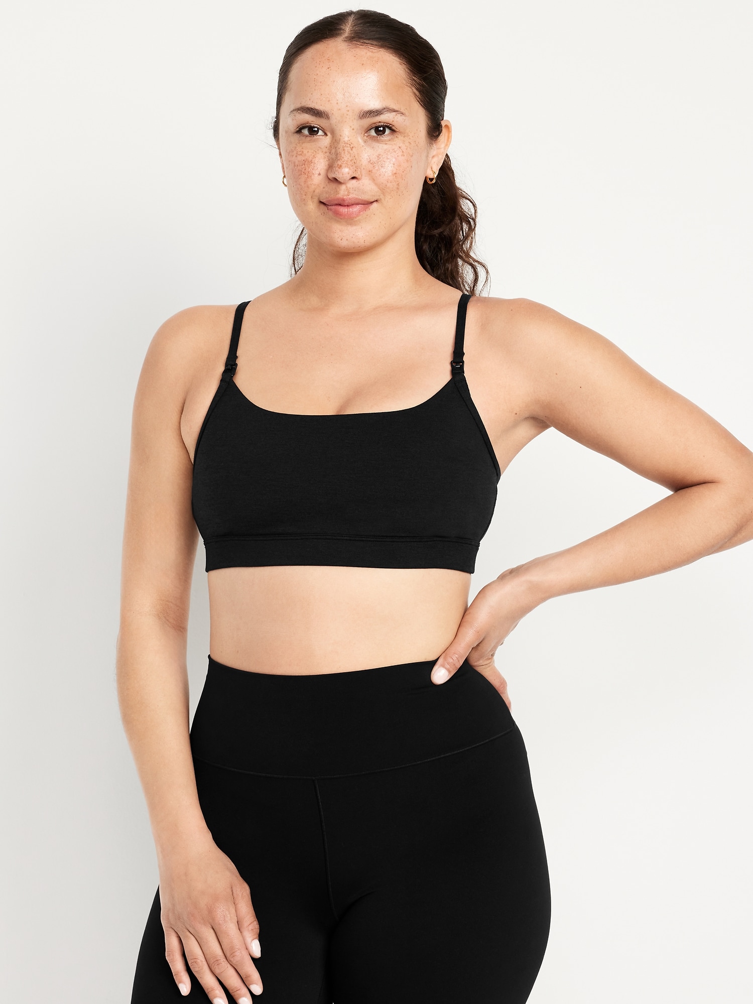 Maternity Light Support CloudComfy Sports Bra: Lightly textured and soft as a literal cloud.scoop neck, racerback, removable pads, go-dry wicks moisture, elastic hem, #775067