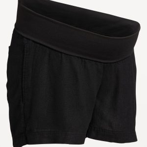 Maternity Linen-Blend Pull-On Shorts — 3.5-inch inseam: foldover jersey waistband, on-seam side pockets, back patch pockets, easy pull-on style, #746574