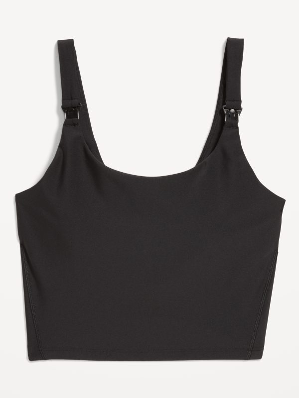 Maternity PowerSoft Nursing Sports Bra: Featuring PowerSoft. A stretchy, peachy-smooth fabric with light compression.scoop neck, adjustable shoulder straps, detachable clips for convenient nursing, cross-cross straps at back, removable pads, go-dry wicks moisture, #434639