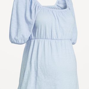 Maternity Puff Sleeve Top: square neck, empire waist, elastic cuffs, flared hem, #771745