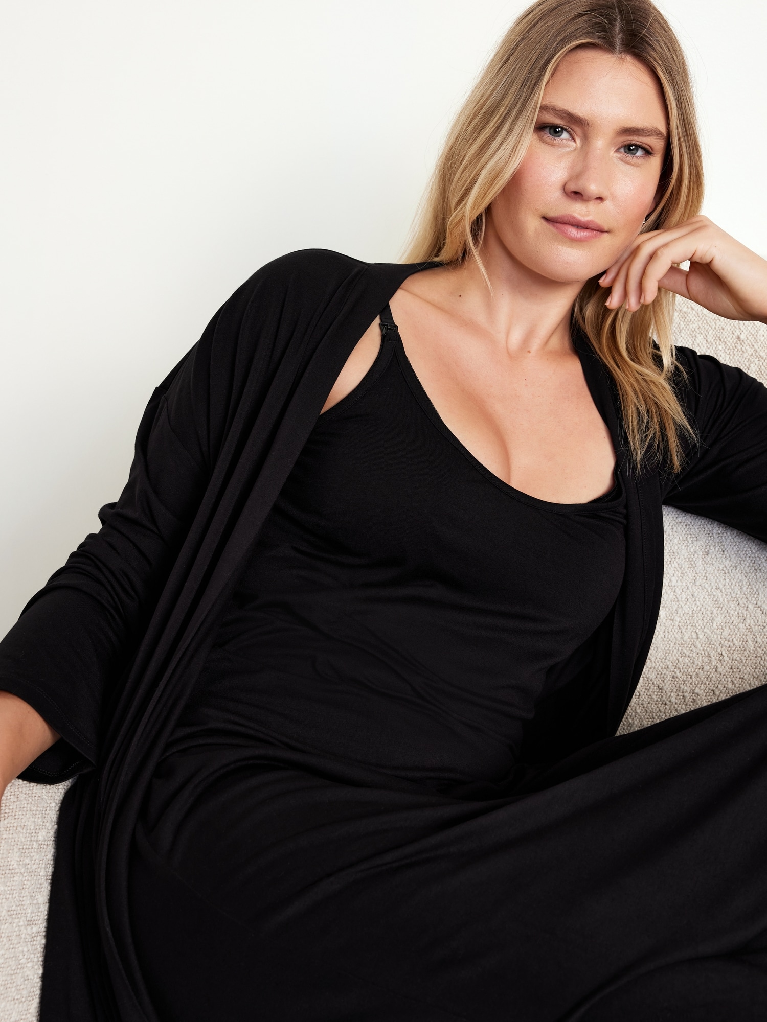 Maternity Robe and Nursing Nightgown Set: includes bathrobe and matching cami nightgown, robe has long sleeves, removeable tie belt and on-seam pockets, nightgown has detachable clips at spaghetti straps, built-in shelf bra for convenient nursing, #465767
