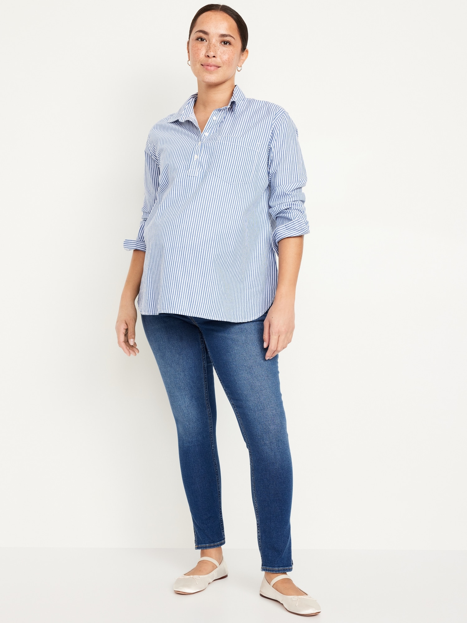 Maternity Rollover-Panel Side-Slit 360° Stretch Skinny Jeans