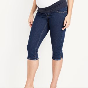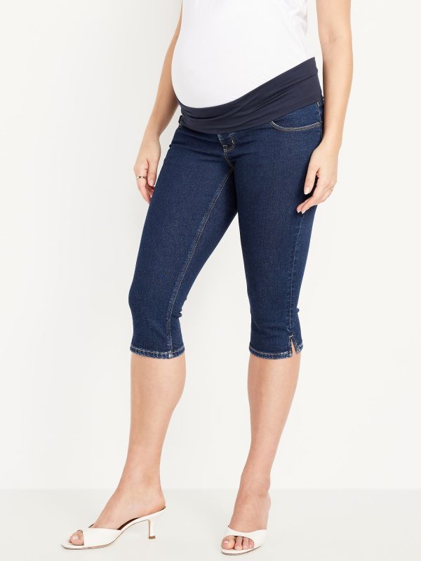 Maternity Rollover-Panel Slim Capri Jeans: versatile rollover panel, faux fly, scoop pockets at front, patch pockets at back, #771533