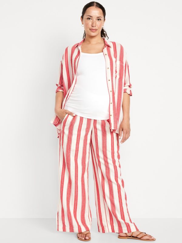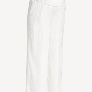 Maternity Rollover Waist Crinkle Gauze Super Wide-Leg Pants: A light, rippled fabric that’s begging to be beachside.rollover waist, pull-on style, on-seam hip pockets, wide leg, #771711