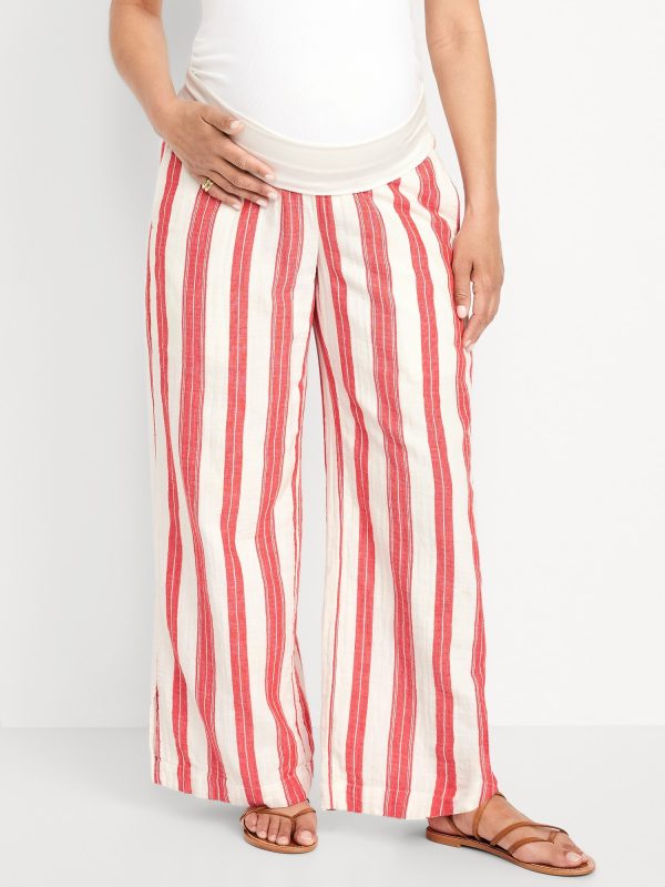Maternity Rollover Waist Crinkle Gauze Wide-Leg Pants: A light, rippled fabric that’s begging to be beachside.rollover waist, pull-on style, on-seam hip pockets, wide leg, #771711