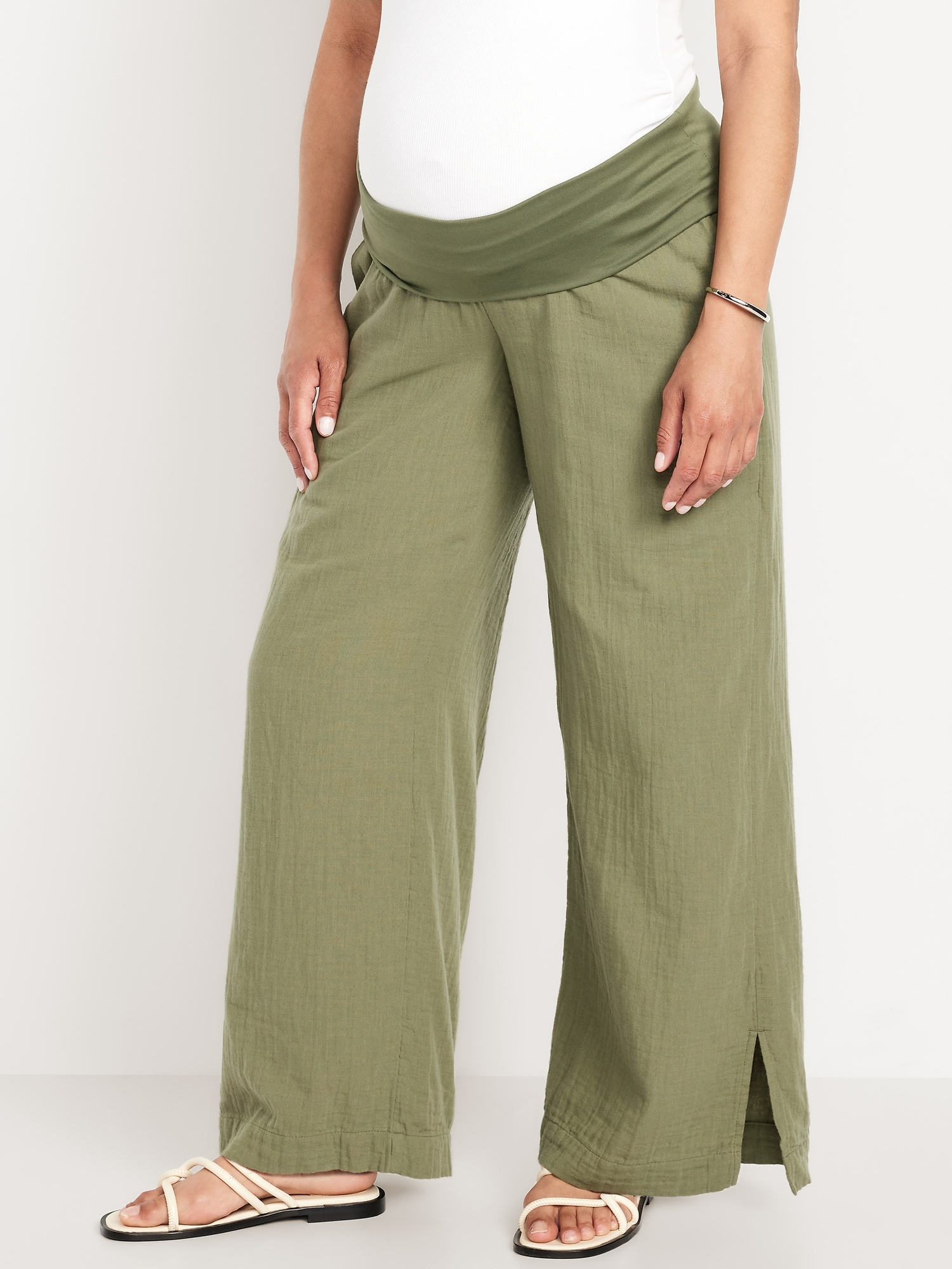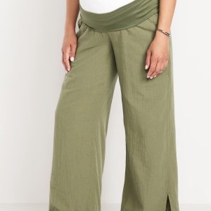 Maternity Rollover Waist Crinkle Gauze Wide-Leg Pants