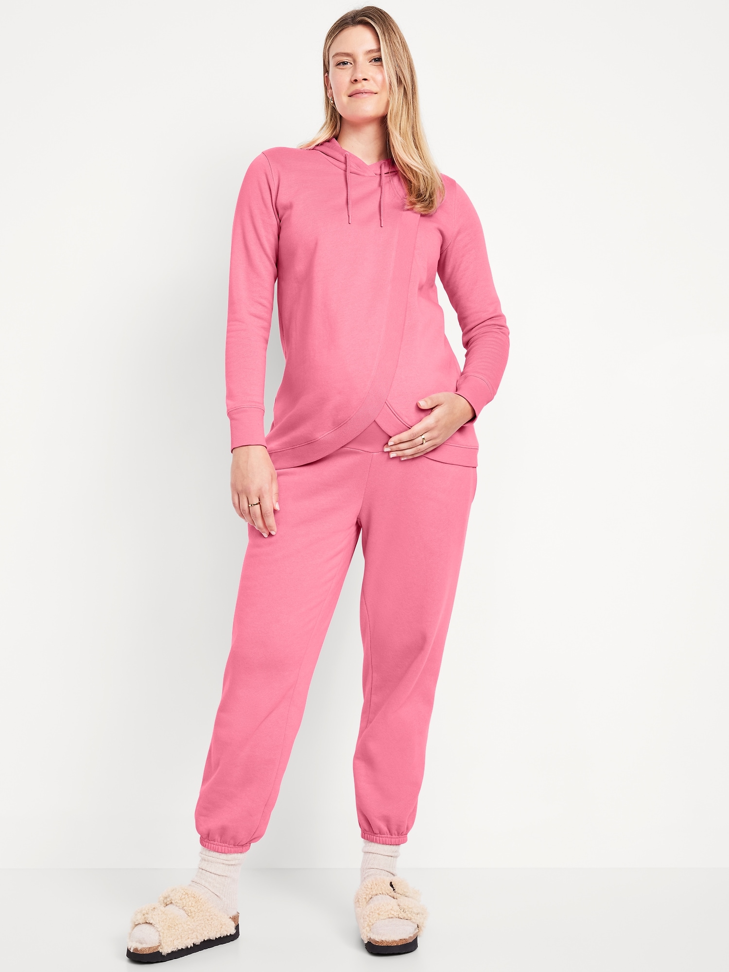 Maternity Rollover-Waist Jogger Sweatpants: rollover waistband, on-seam side pockets, a “watched all 5 seasons today” kind of pant, elasticized leg openings, pull-on style, #612127