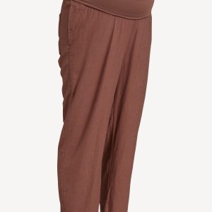 Maternity Rollover Waist Linen Pant: rollover waistband, faux fly, slit pockets at sides, patch pockets at back, #719649