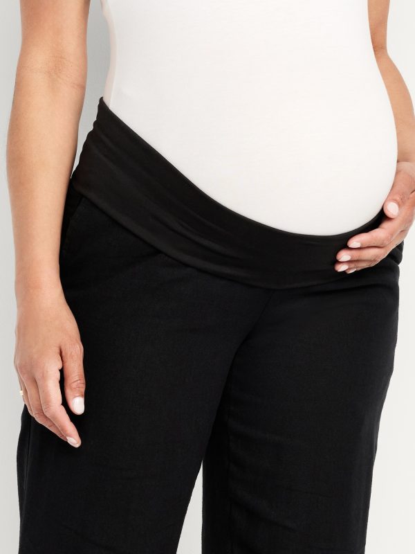 Maternity Rollover Waist Linen Pant: rollover waistband, faux fly, slit pockets at sides, patch pockets at back, #719649