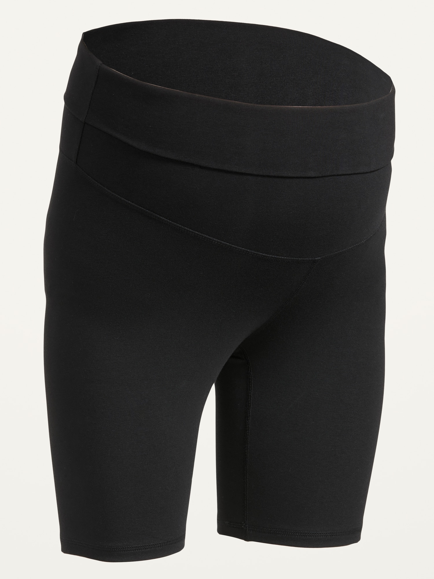 Maternity Rollover-Waist PowerChill Biker Shorts — 8-inch inseam: Elasticized rollover waistband, with light-reflecting Old Navy Active logo at center back., Soft, breathable low compression jersey holds you in while letting you vent., Go-Dry moisture-wicking technology keeps you dry & comfortable., Four-way super stretch for ultimate movement., Flat-lock seams prevent chafing., #745182