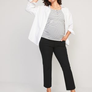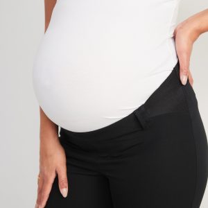 Maternity Side Panel Pixie Flare Pants: The stretchy profesh pant you love, in a just-right flare., Pull-on waist, with belt loops & elastic side panels., Faux fly., Decorative welt pockets at back., Soft-brushed twill with two-way stretch., #501867