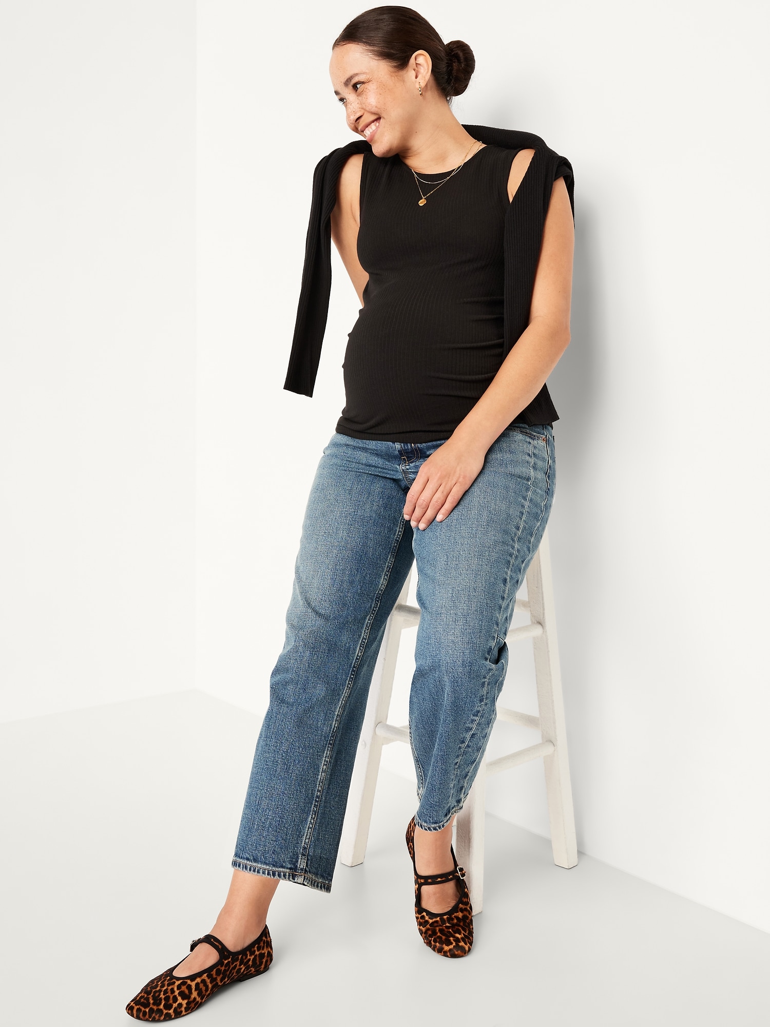 Maternity Sleeveless High-Neck Rib Top