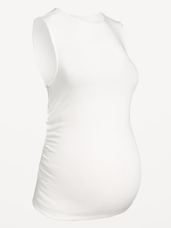 Maternity Sleeveless High-Neck Rib Top: high neck, sleeveless, shirred sides for a flexible fit, #826397