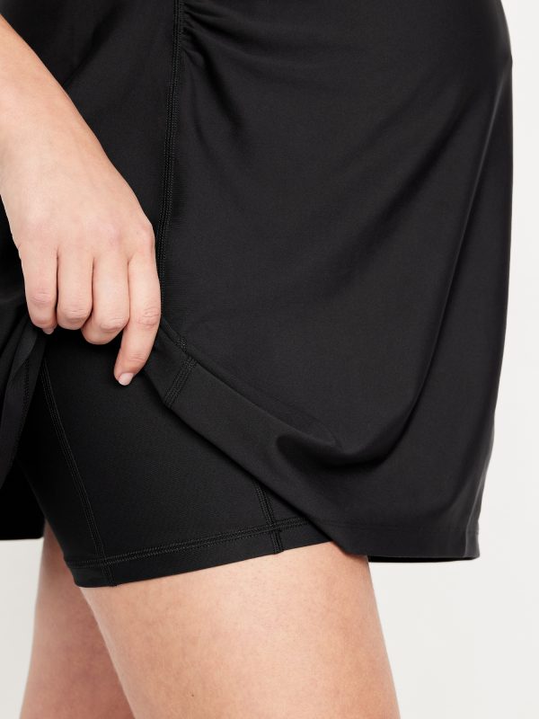 Maternity Sleeveless PowerSoft Mini Skort Dress: Power-up in our maternity PowerSoft skort dress — light compression fabric meets a ridiculously smooth, peachy-soft feel.scoop neck, wide shoulder straps, built-in shelf bra, removable shaped cups, built-in briefs, slits at sides, go-dry wicks moisture, #719694