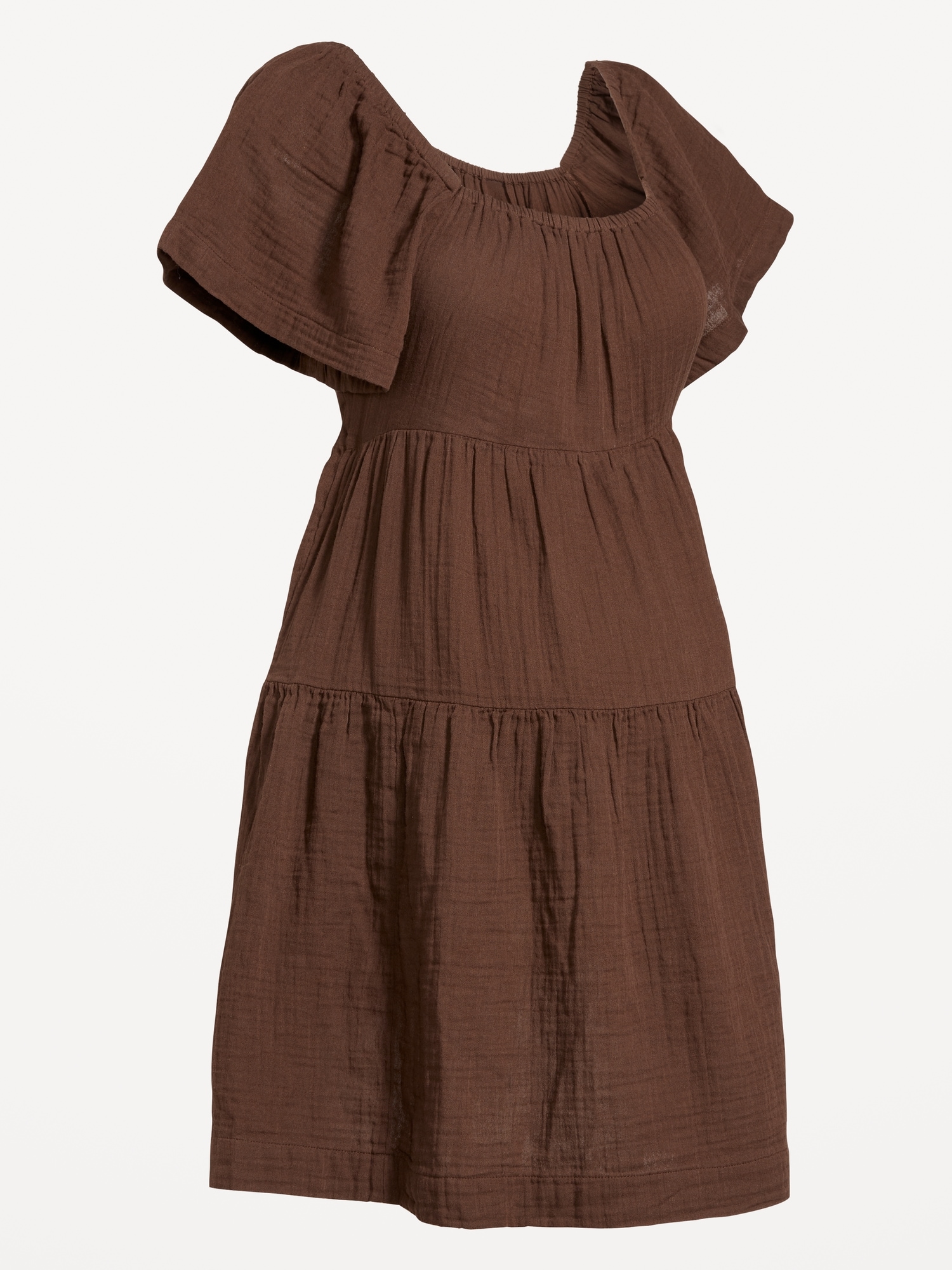 Maternity Square-Neck Crinkle Gauze Mini Dress