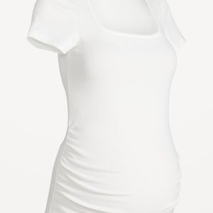 Maternity Trapeze-Neck T-Shirt: rib knit, short sleeves, shirred sides, #775071