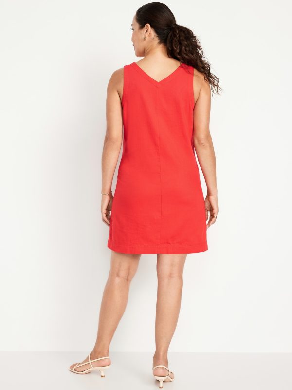 Maternity V-Neck Denim Mini Dress: V-neck, button front, patch pockets at front, #771596