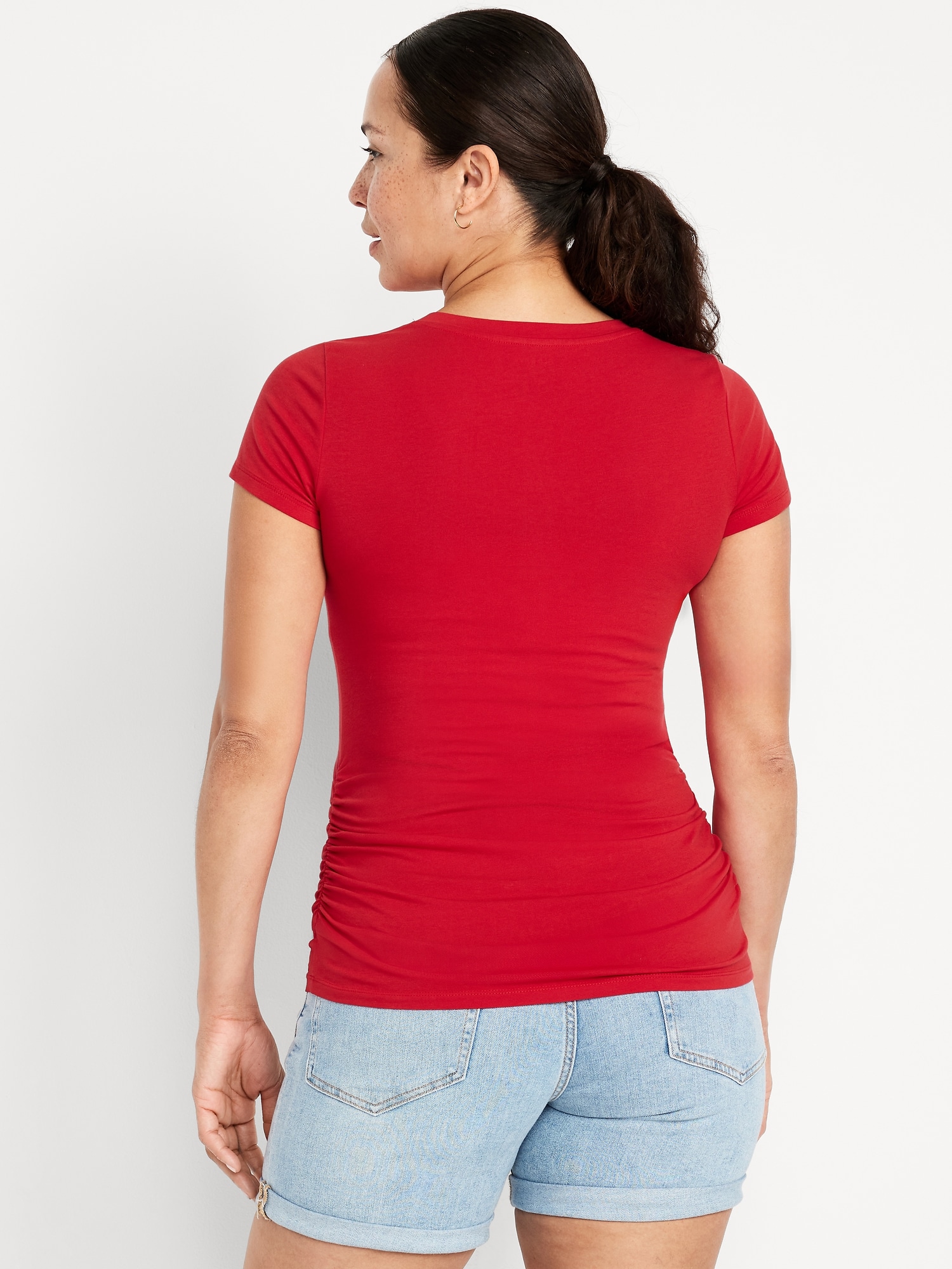 Maternity V-Neck T-Shirt: short sleeves, shirred sides for a flexible fit, #417926