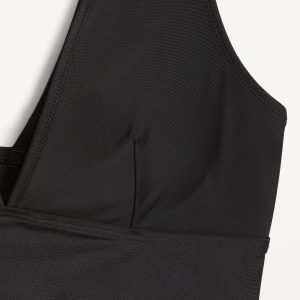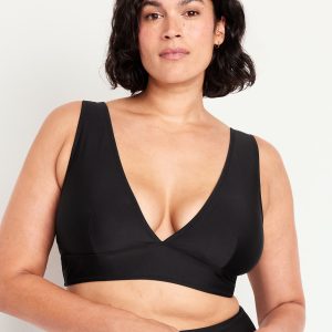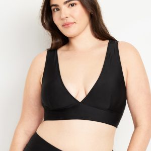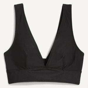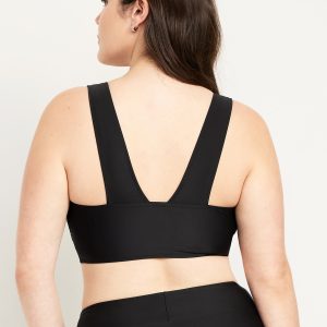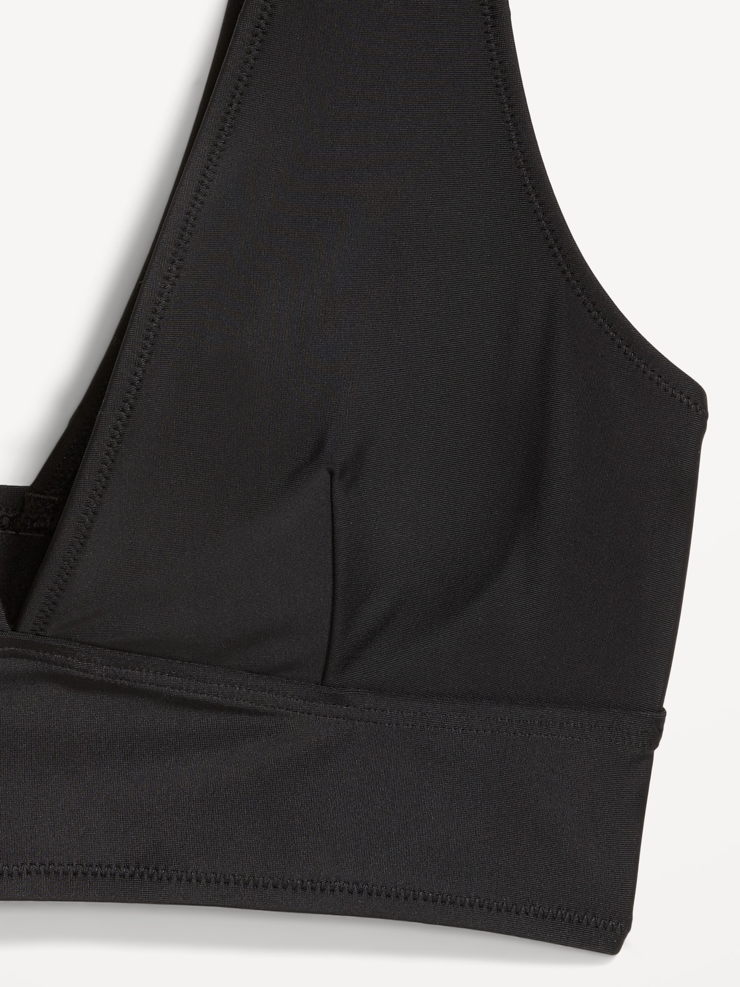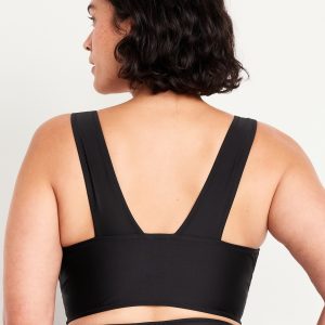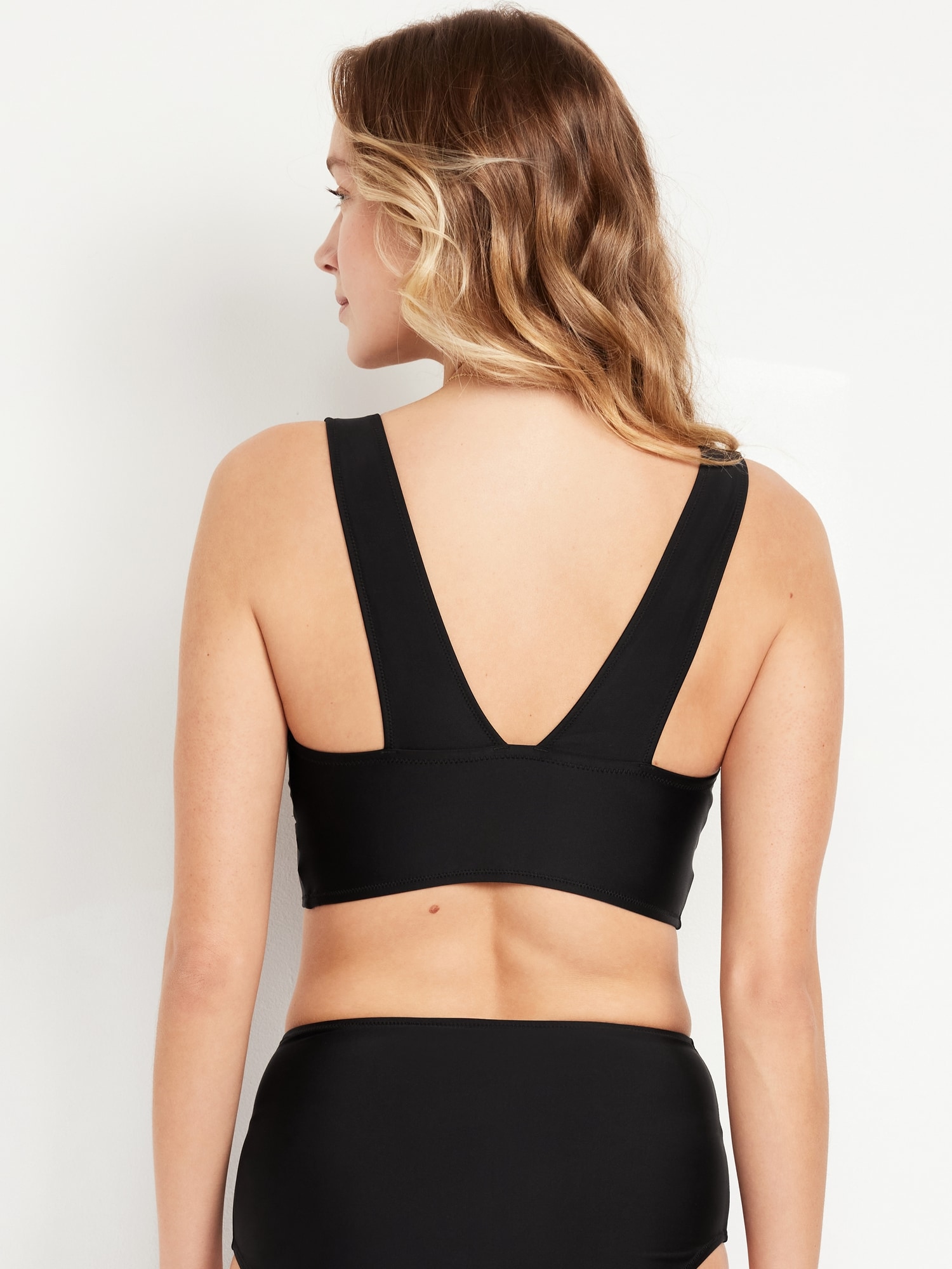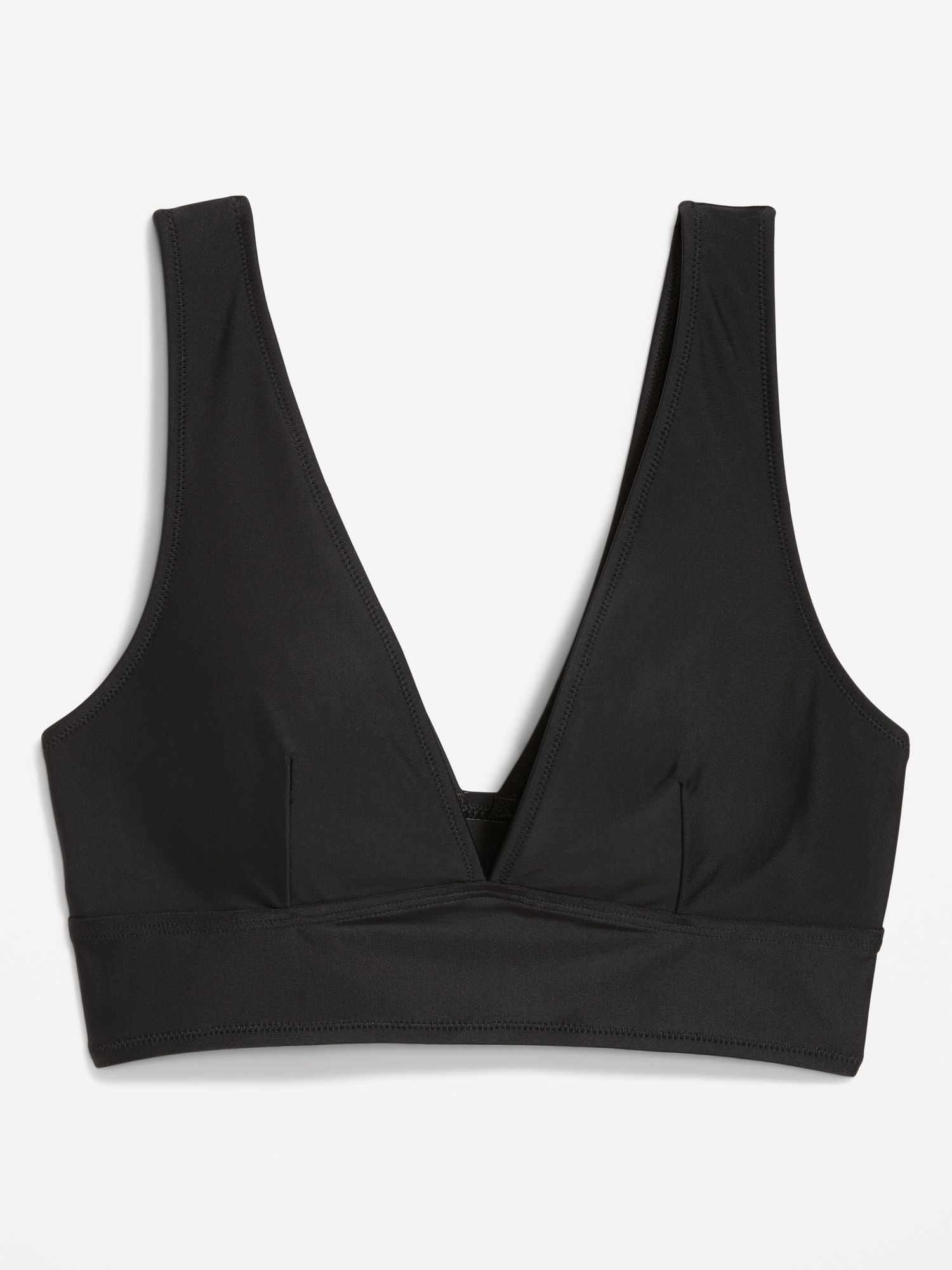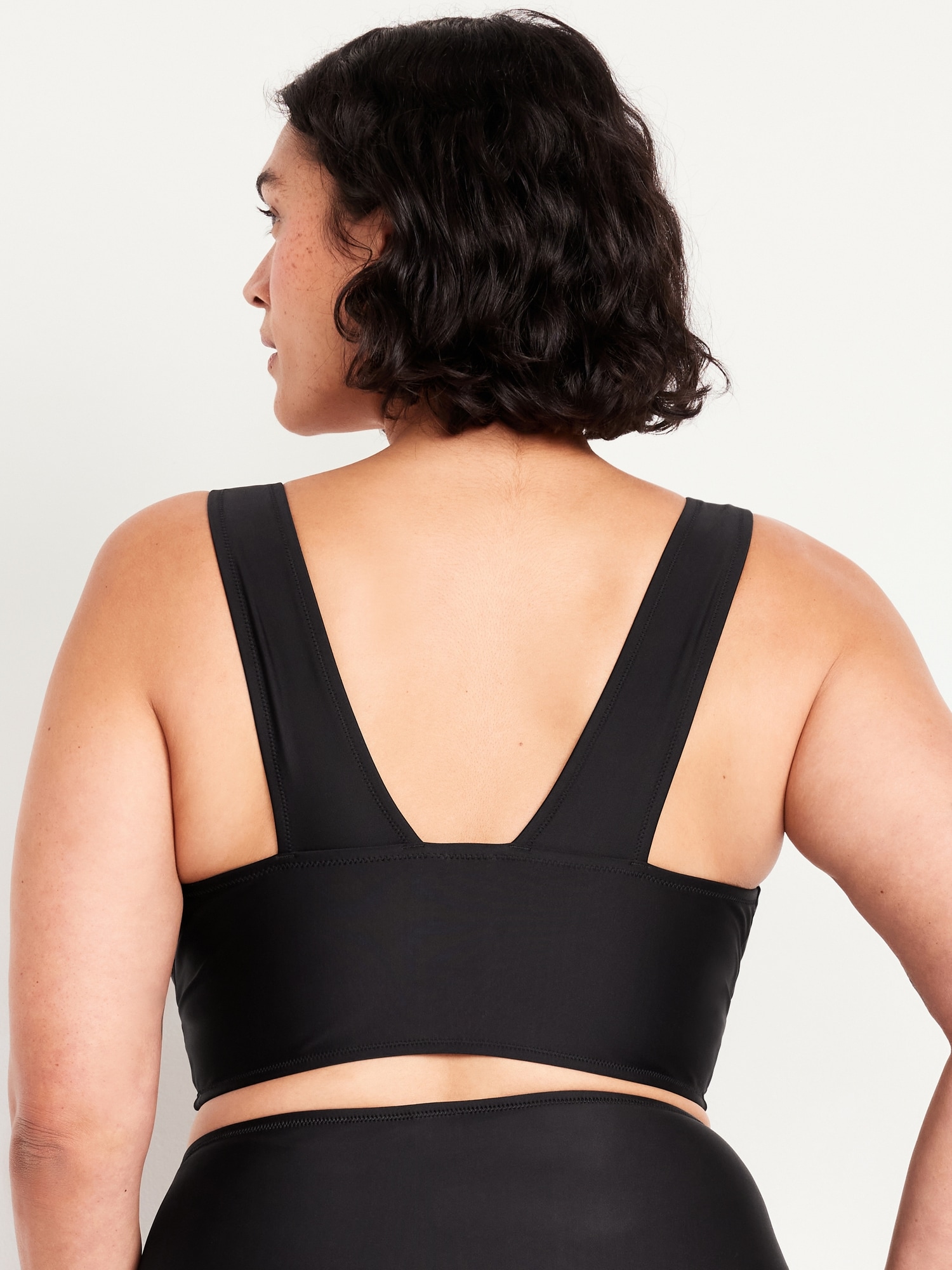 Matte Longline Bikini Swim Top: plunging v-neck, wide straps, removable pads, elastic-banded hem, #865325