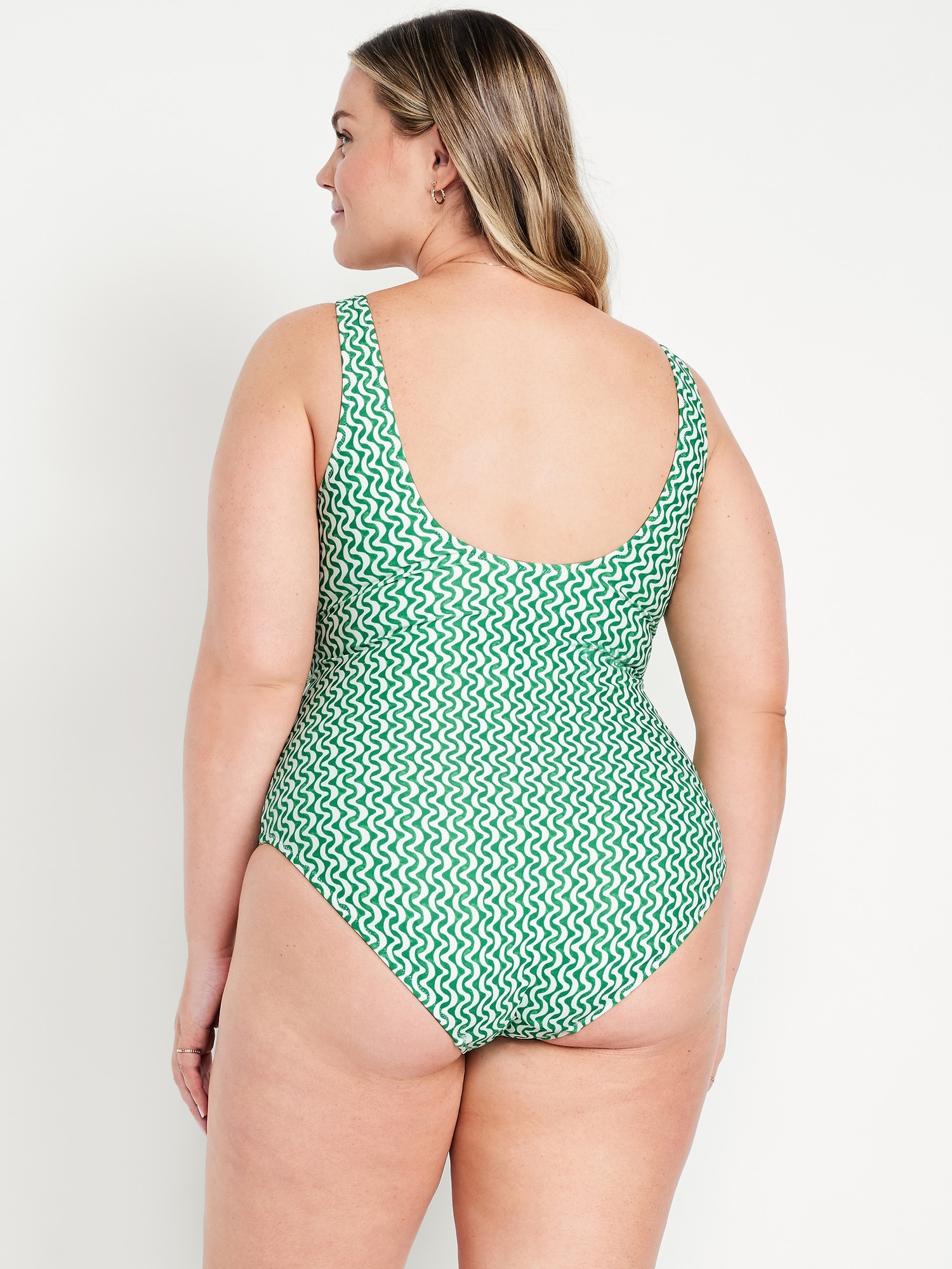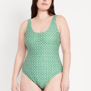 Matte One-Piece Swimsuit: scoop neck, wide straps, low scoop back, removable pads, elastic leg openings, #604387