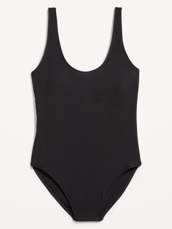 Matte One-Piece Swimsuit: scoop neck, wide straps, low scoop back, removable pads, elastic leg openings, #604387