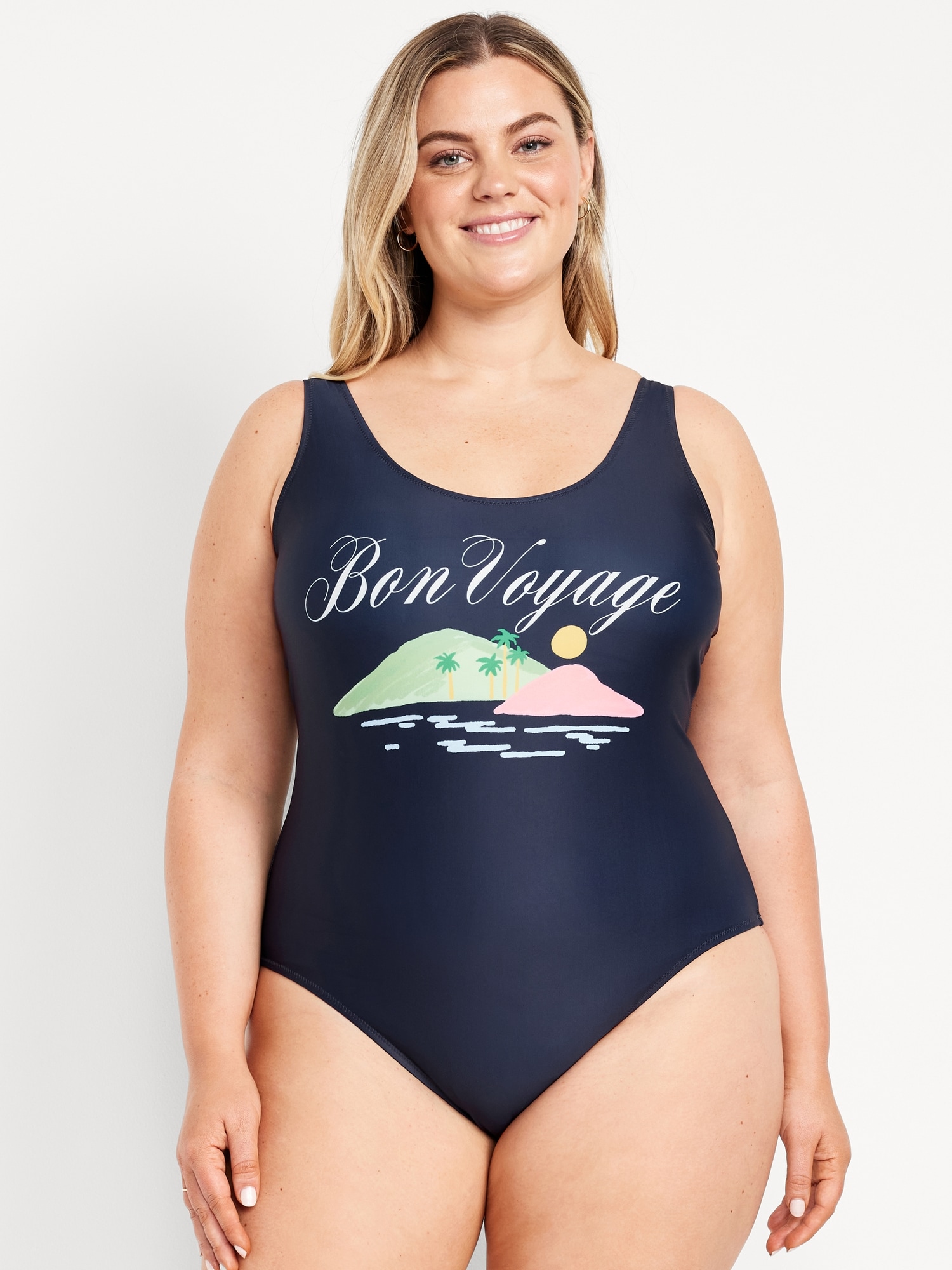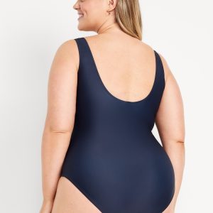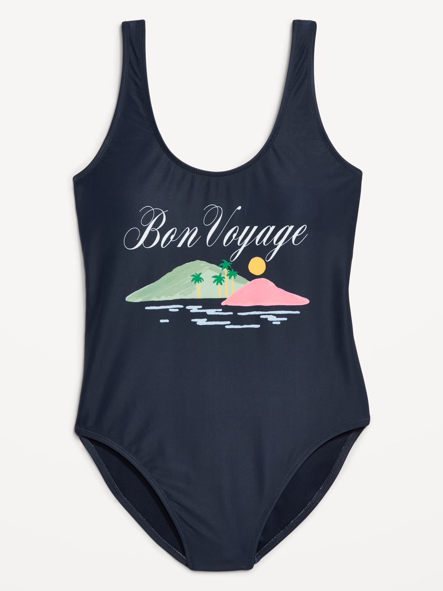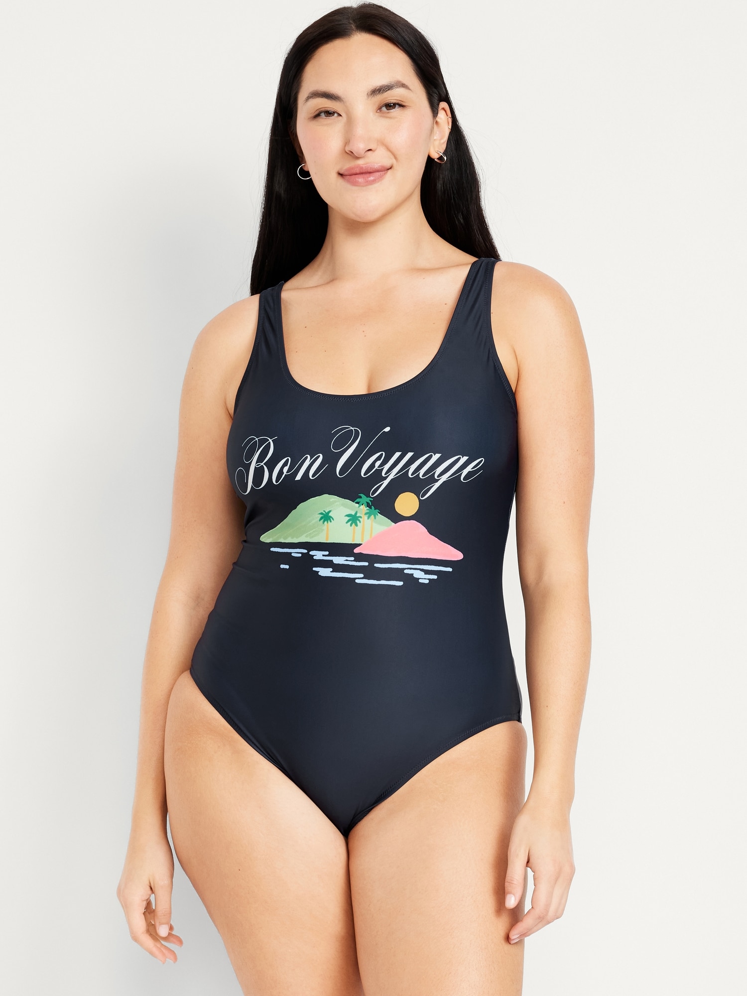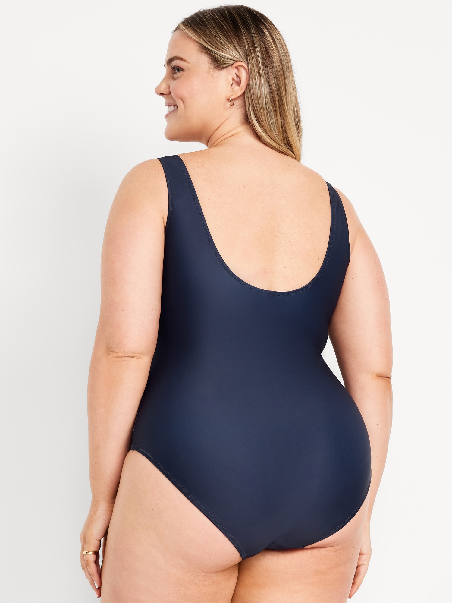 Matte One-Piece Swimsuit: scoop neck, wide straps, low scoop back, removable pads, elastic leg openings, #604387