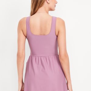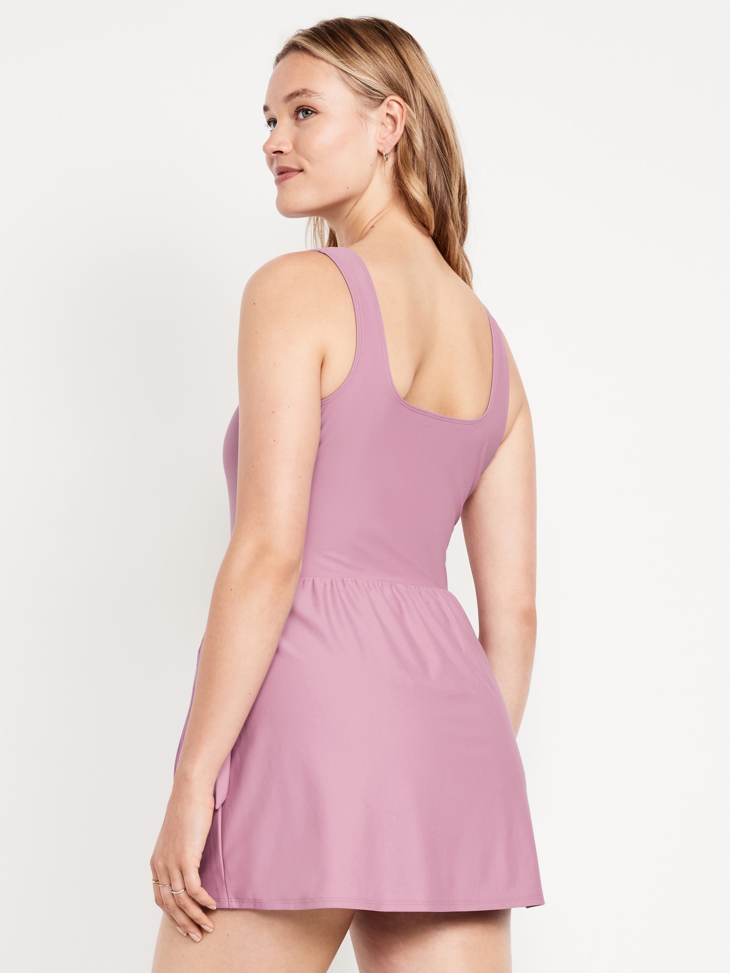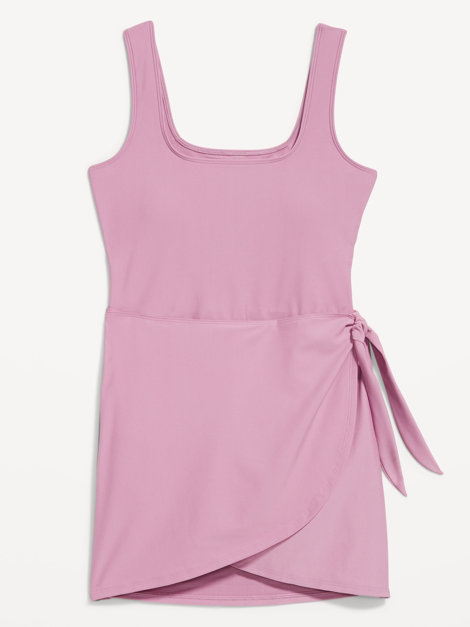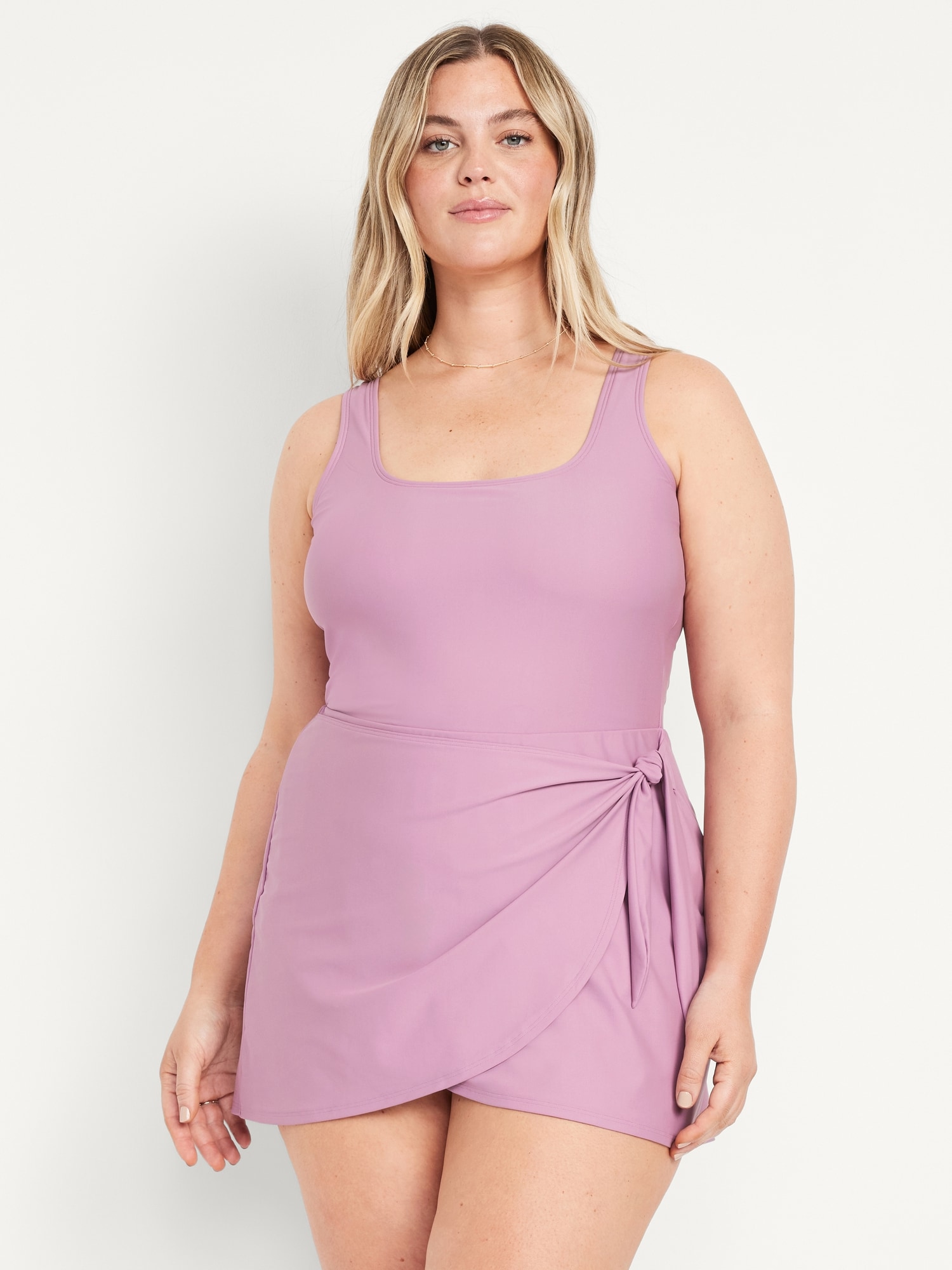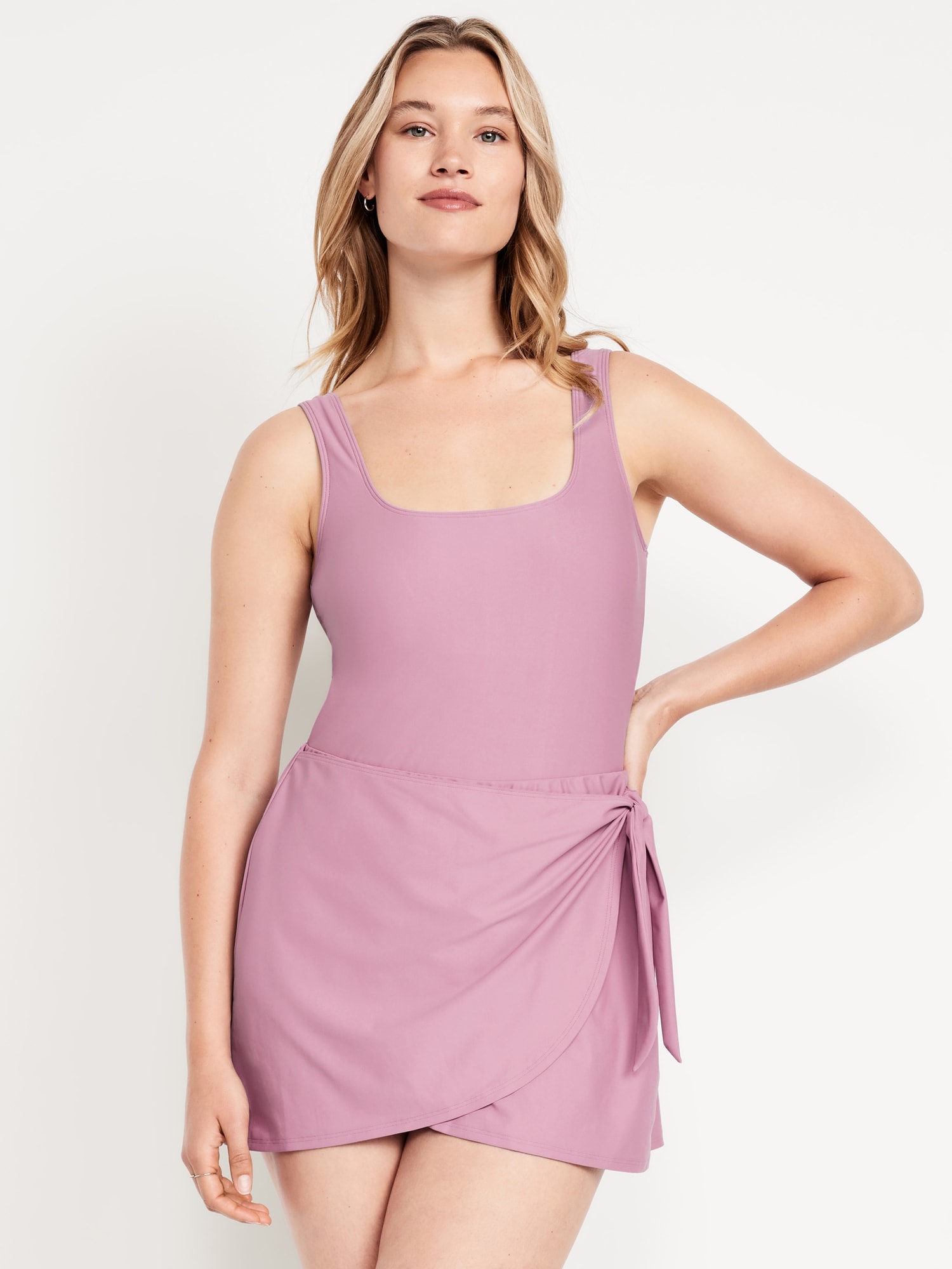 Matte Side-Tie Swim Dress: square neck, wide shoulder straps, removable pads, built-in briefs, #854710