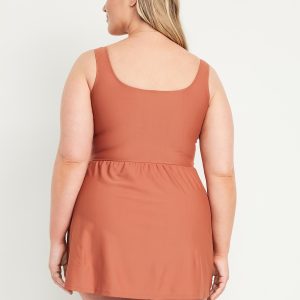 Matte Side-Tie Swim Dress: square neck, wide shoulder straps, removable pads, built-in briefs, #854710