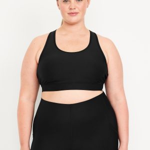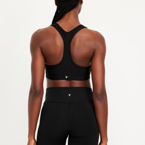 Medium Support PowerSoft Racerback Sports Bra: Featuring PowerSoft. Light compression meets a peachy-smooth, sweat-wicking fabric.stabilizing straps, racerback, front mesh lining with shaped cups, removable pads, banded-elastic hem, go-dry wicks moisture, #569574
