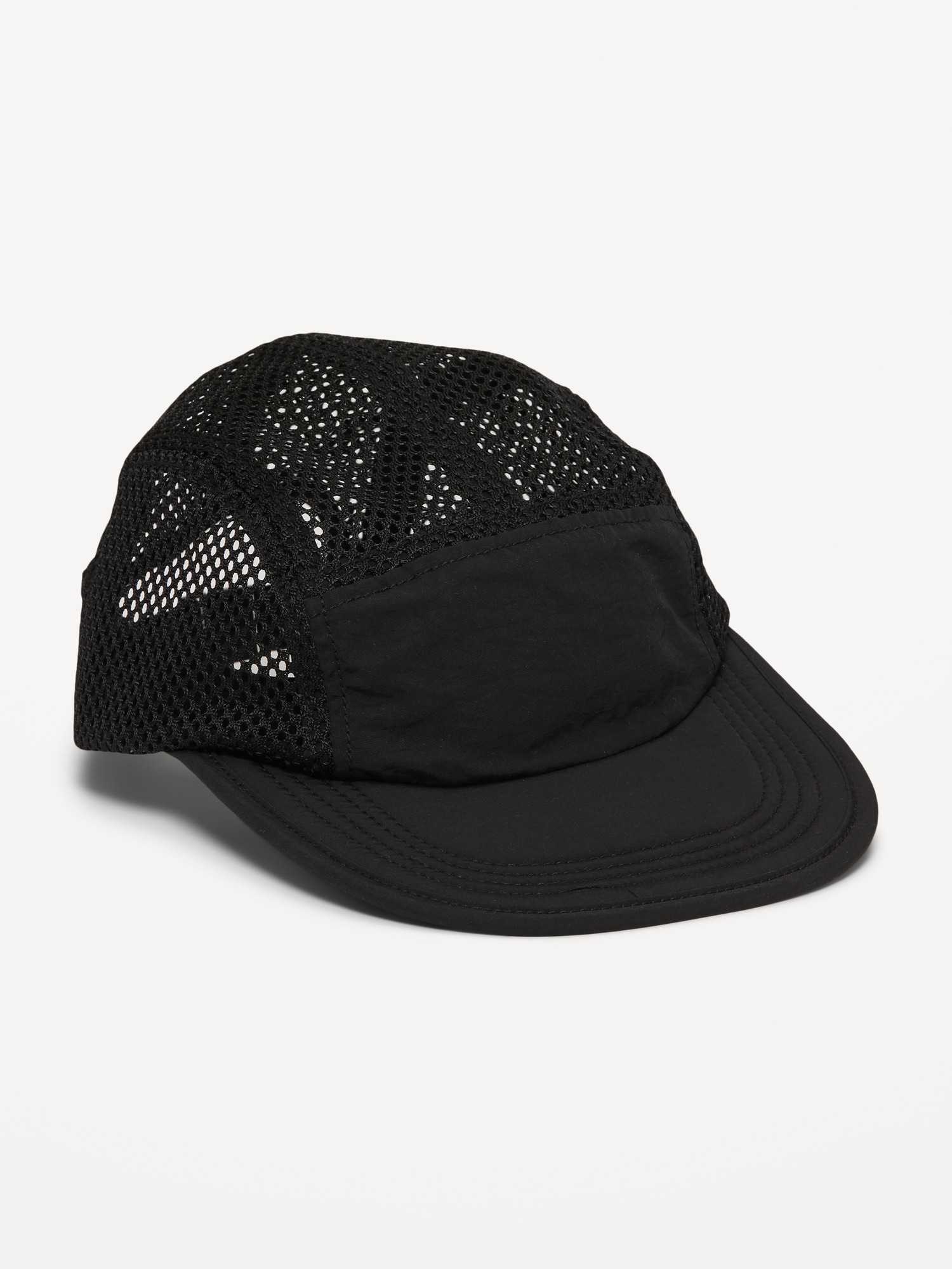 Mesh Run Cap for Men: mesh upper, molded visor, adjustable plastic strap at back, interior sweatband, #764170