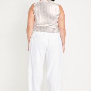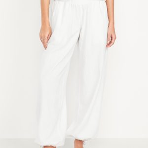 Mid-Rise Linen-Blend Harem Pants: smocked-elastic waistband, front pockets, cinched hem, #784297