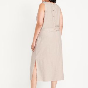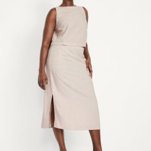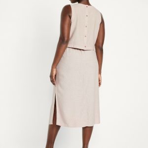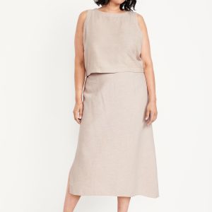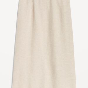 Mid-Rise Linen-Blend Midi Skirt: elasticized back waist, hidden left side zipper, side slits, easy pull-on style, #705483