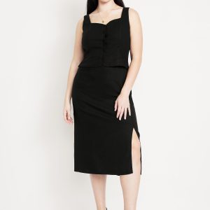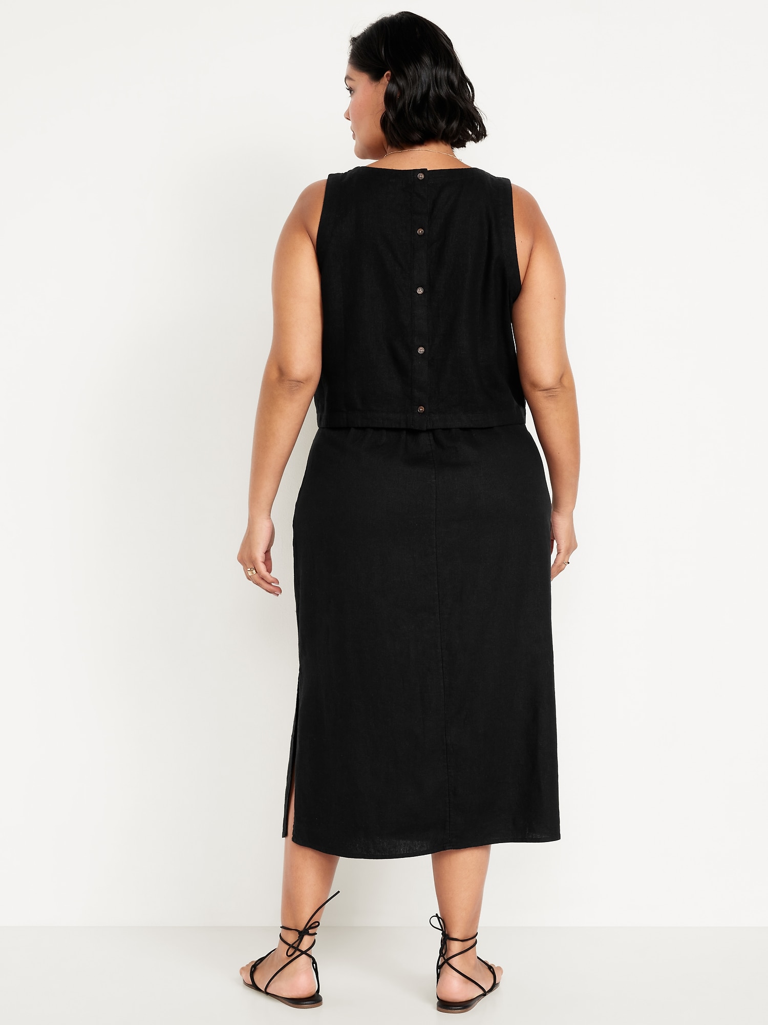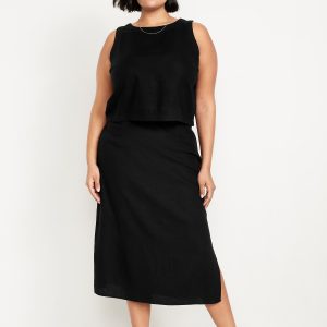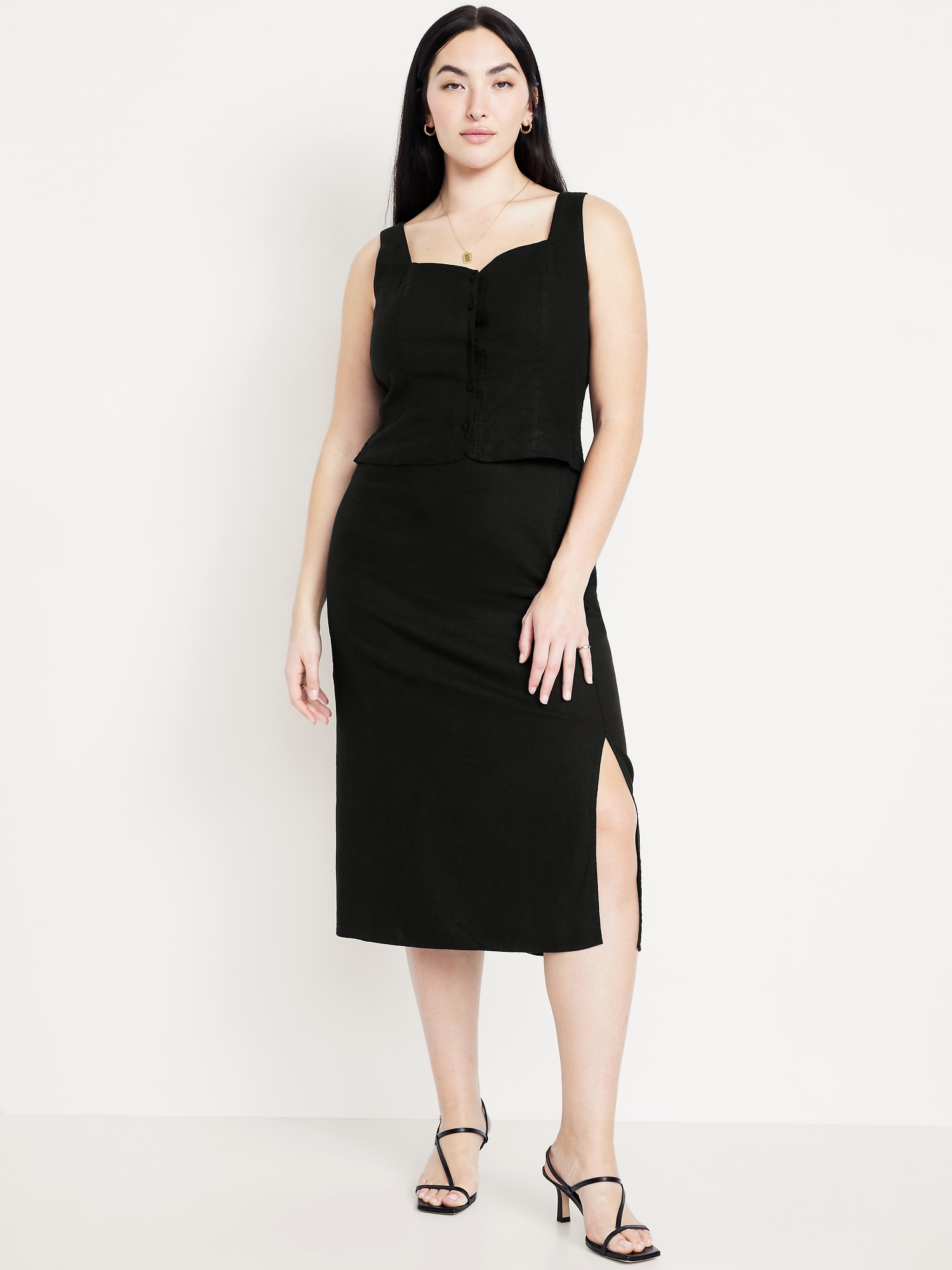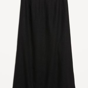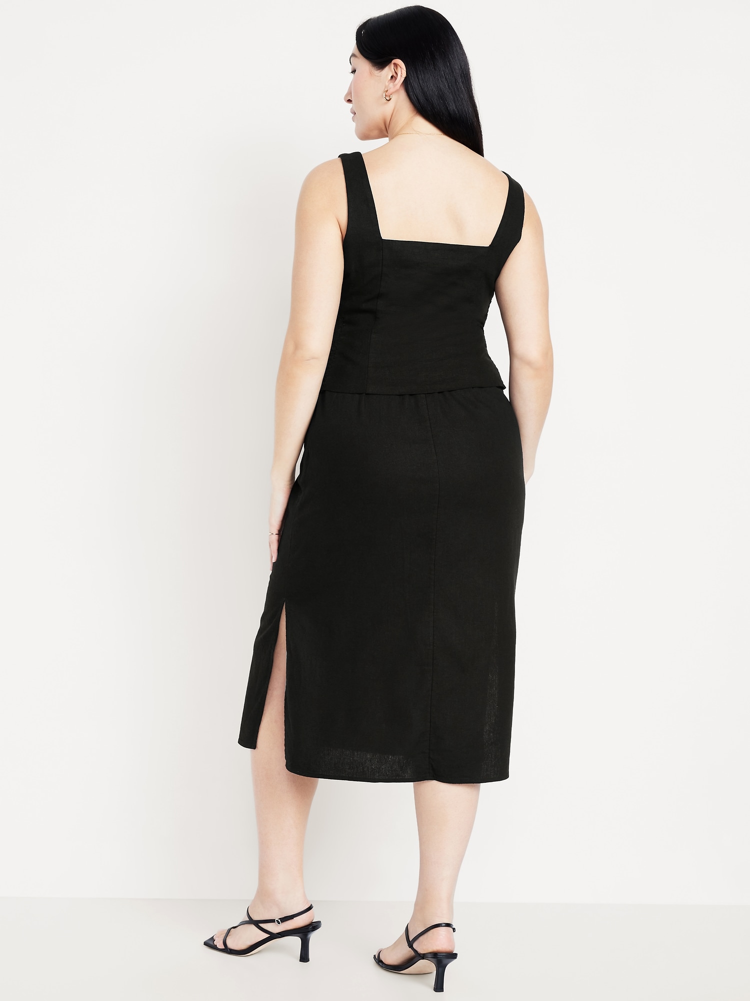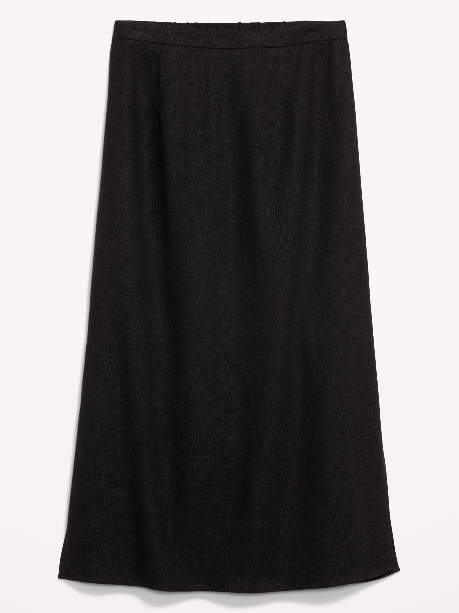Mid-Rise Linen-Blend Midi Skirt: elasticized back waist, hidden left side zipper, side slits, easy pull-on style, #705483
