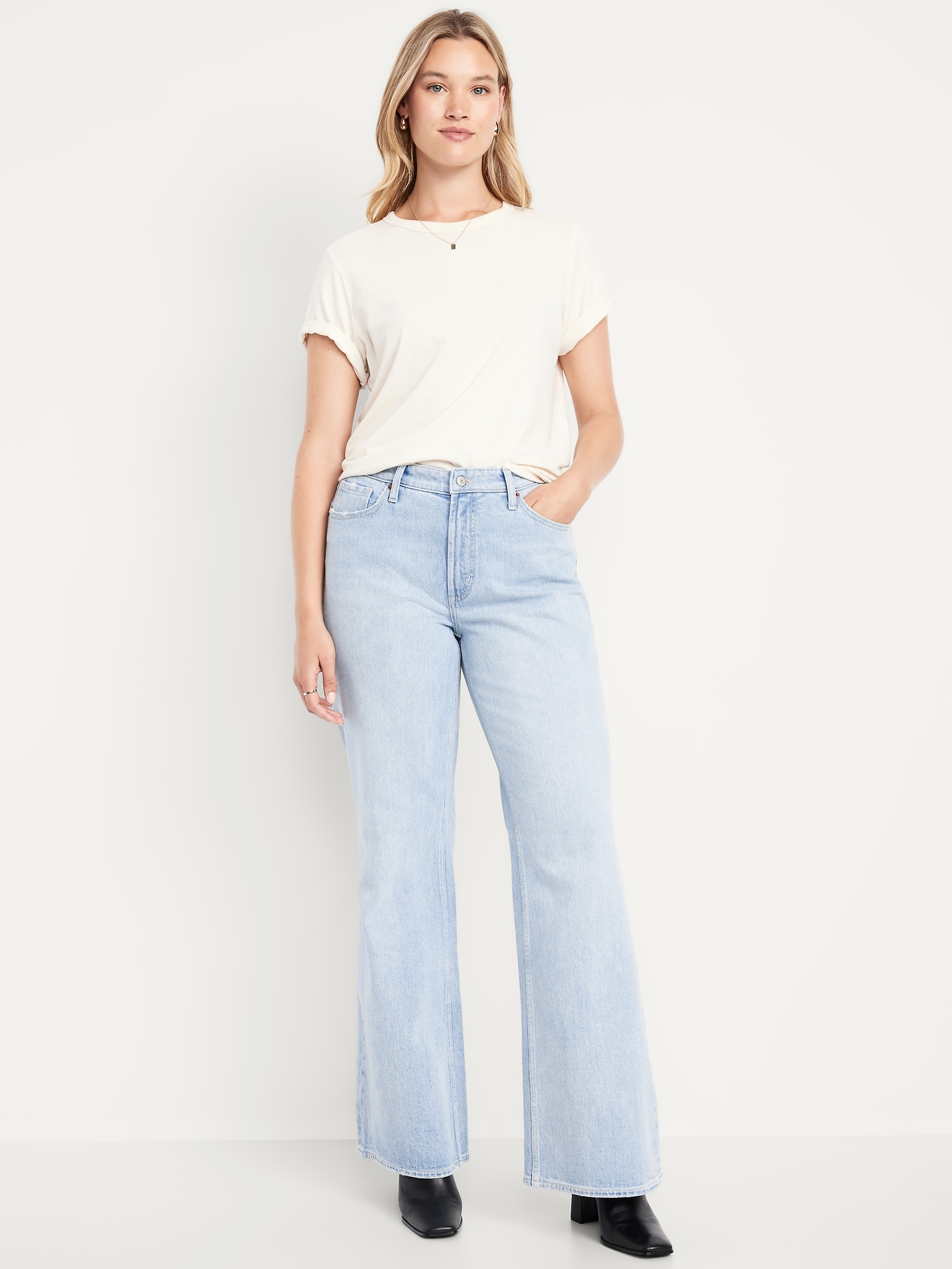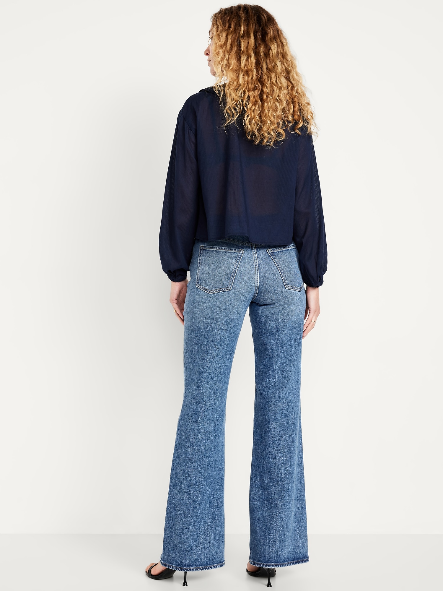 Mid-Rise Loose Boot-Cut Jeans: mid-rise waist, zip fly, boot-cut leg, #841305