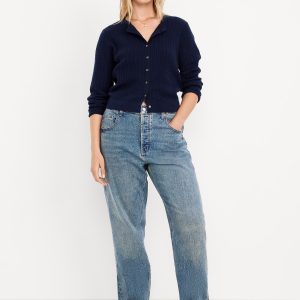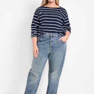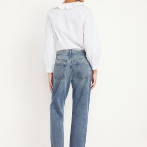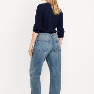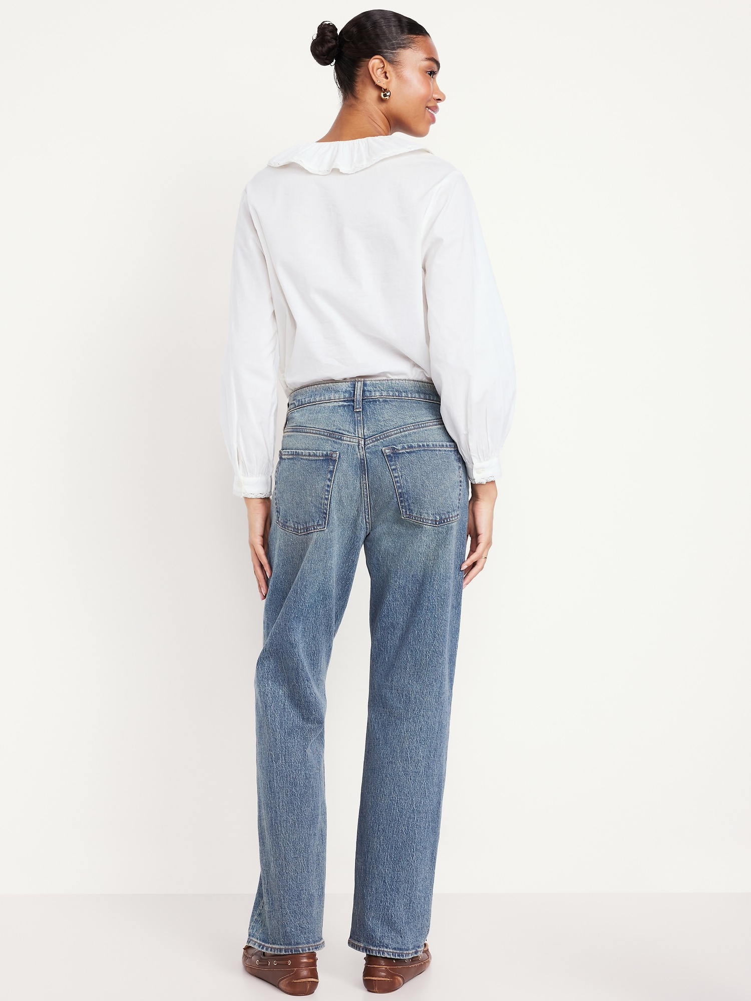Mid-Rise Slouchy Straight Jeans: Low-slung and laid back, with puddling at the hem.mid-rise waist that’s low slung on the hips, hidden button fly, straight leg, #805756
