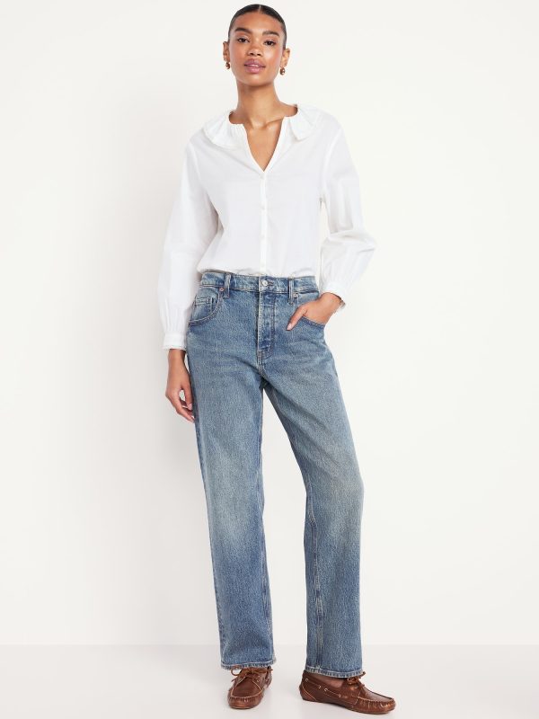Mid-Rise Slouchy Straight Jeans: Low-slung and laid back, with puddling at the hem.mid-rise waist that’s low slung on the hips, hidden button fly, straight leg, #805756