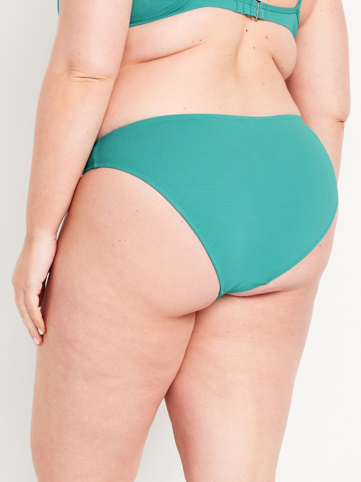 Mid-Rise Textured Bikini Swim Bottoms