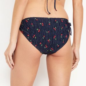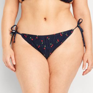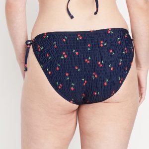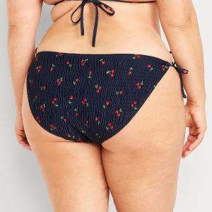 Mid-Rise Textured String Bikini Swim Bottoms: side ties, elastic waist, elastic leg openings, #864987