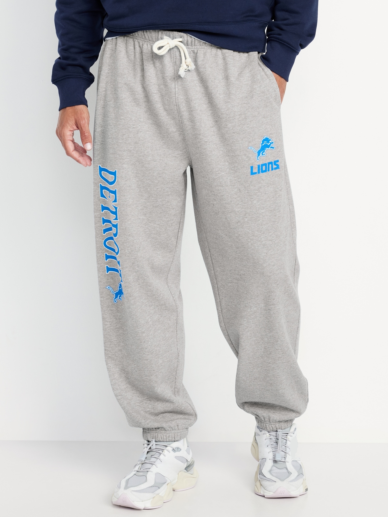 NFL™ Detroit Lions™ Baggy Rotation Jogger Sweatpants: elastic-drawstring waist, licensed graphics at hip, on-seam pockets, back right patch pocket, cinched cuffs, © 2025 NFL Enterprises LLC. The team names, logos and uniform designs are registered trademarks of the teams indicated., #788667