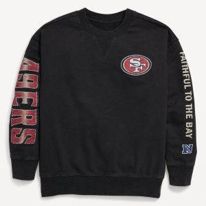 NFL™ San Francisco 49ers™ Oversized Sweater for Boys: crew neck, long sleeves, drop shoulders, licensed graphic, © 2025 NFL Enterprises LLC. NFL and the NFL shield design are registered trademarks of the National Football League., #805525