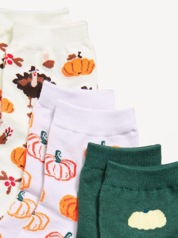 Novelty Quarter Crew Socks 3-Pack for Women: includes 3 pairs of quarter crew socks, rib-knit openings, notched seams at toe and heel, #609246