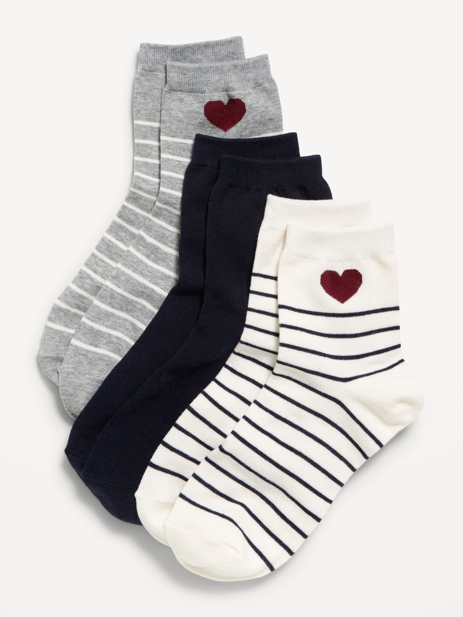 Novelty Quarter Crew Socks 3-Pack for Women: includes 3 pairs of quarter crew socks, rib-knit openings, notched seams at toe and heel, #609246