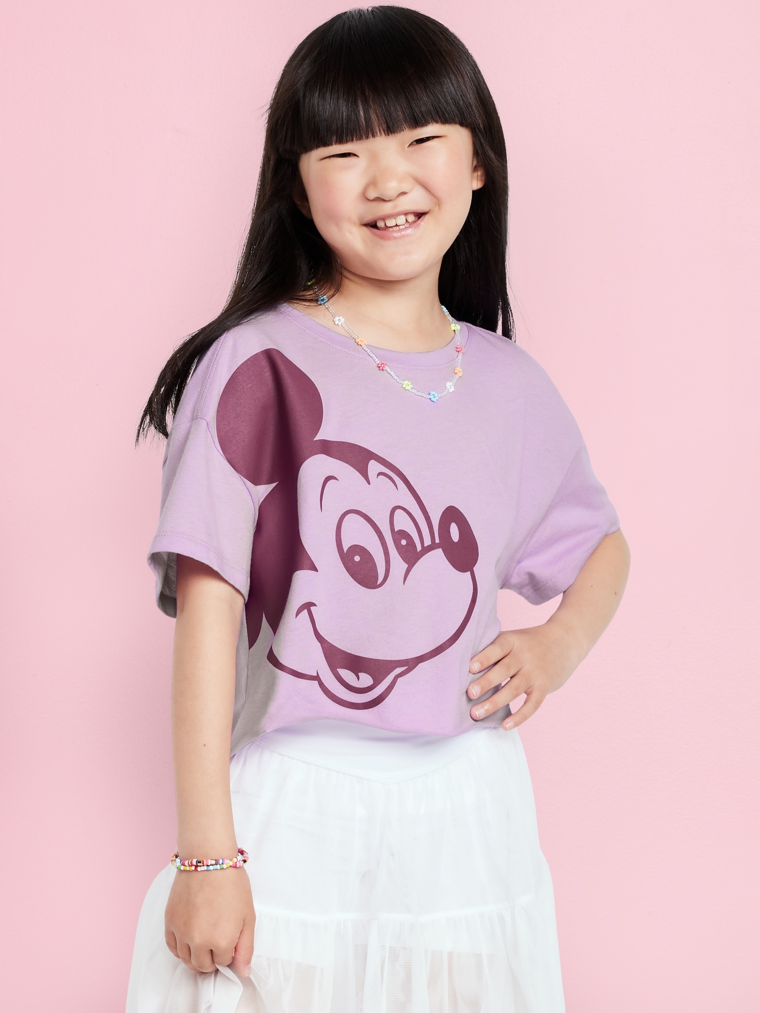 Old Navy x Disney© Cropped Graphic Raw-Edge T-Shirt for Girls: crew neck, short sleeves, licensed character graphic varies, raw-edge hem, Disney©, #763495