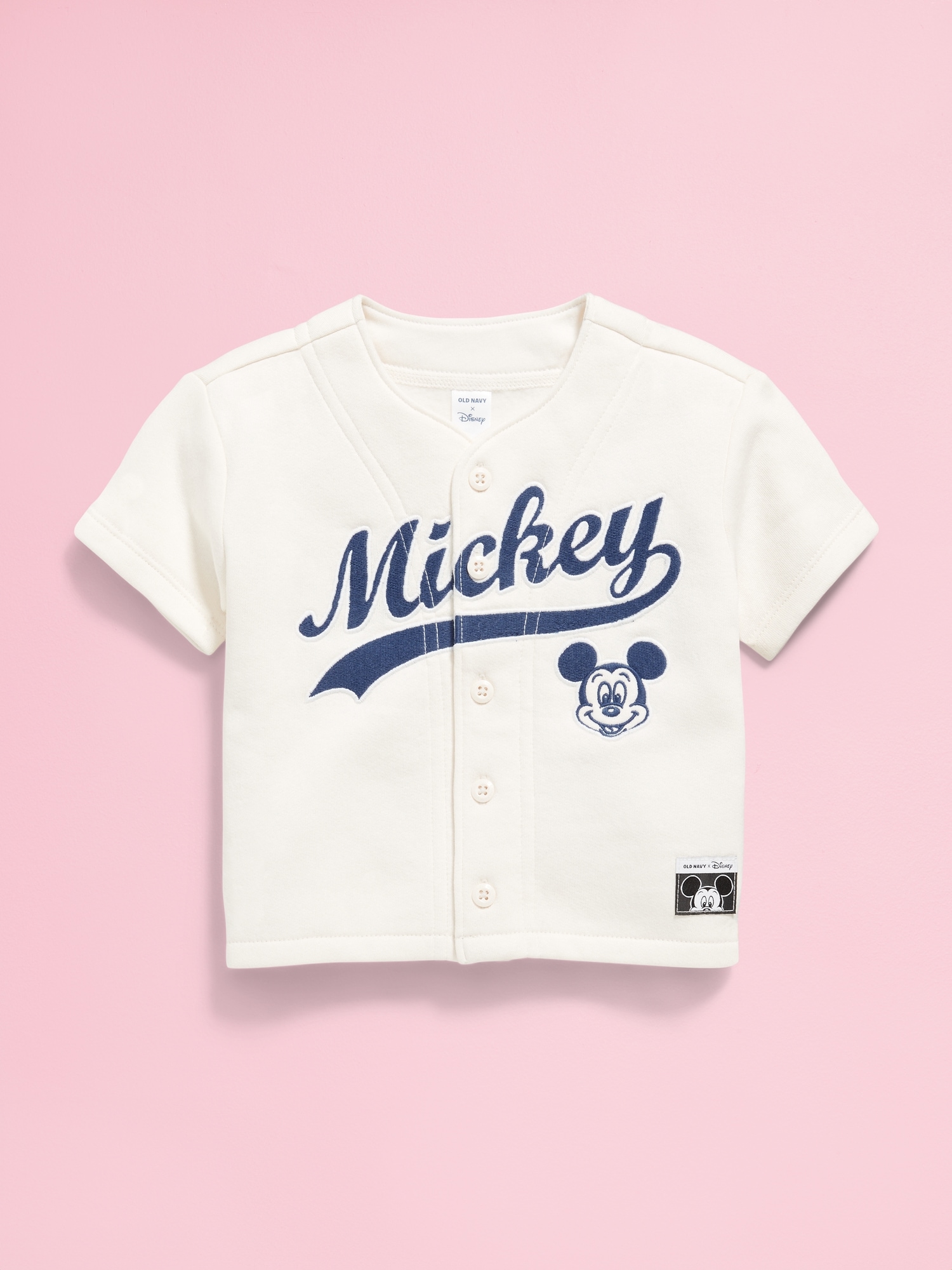 Old Navy x Disney© Mickey Mouse Baseball Shirt for Baby: crew neck, short sleeves, licensed character graphic, full-button front, Disney©, #767163