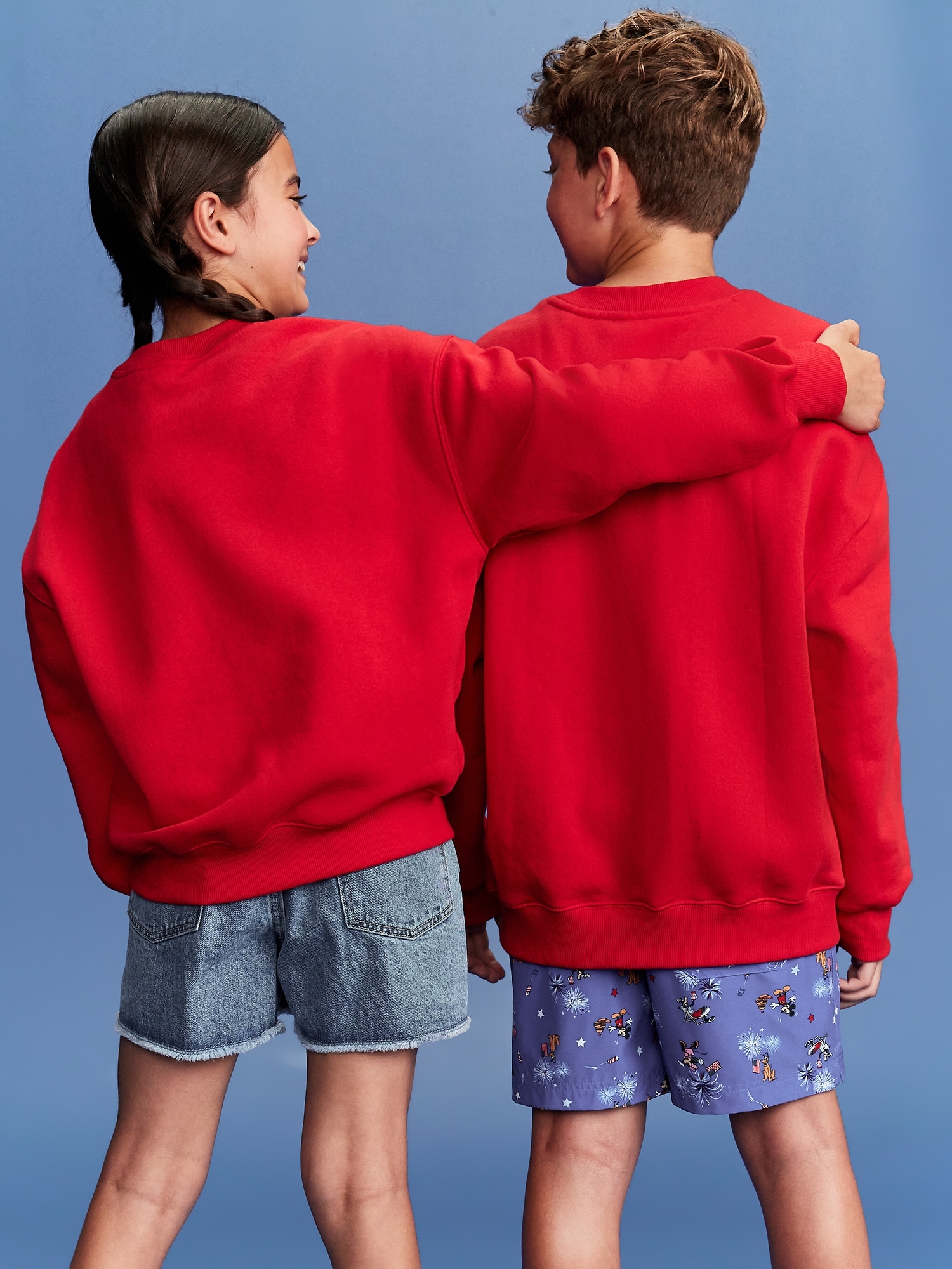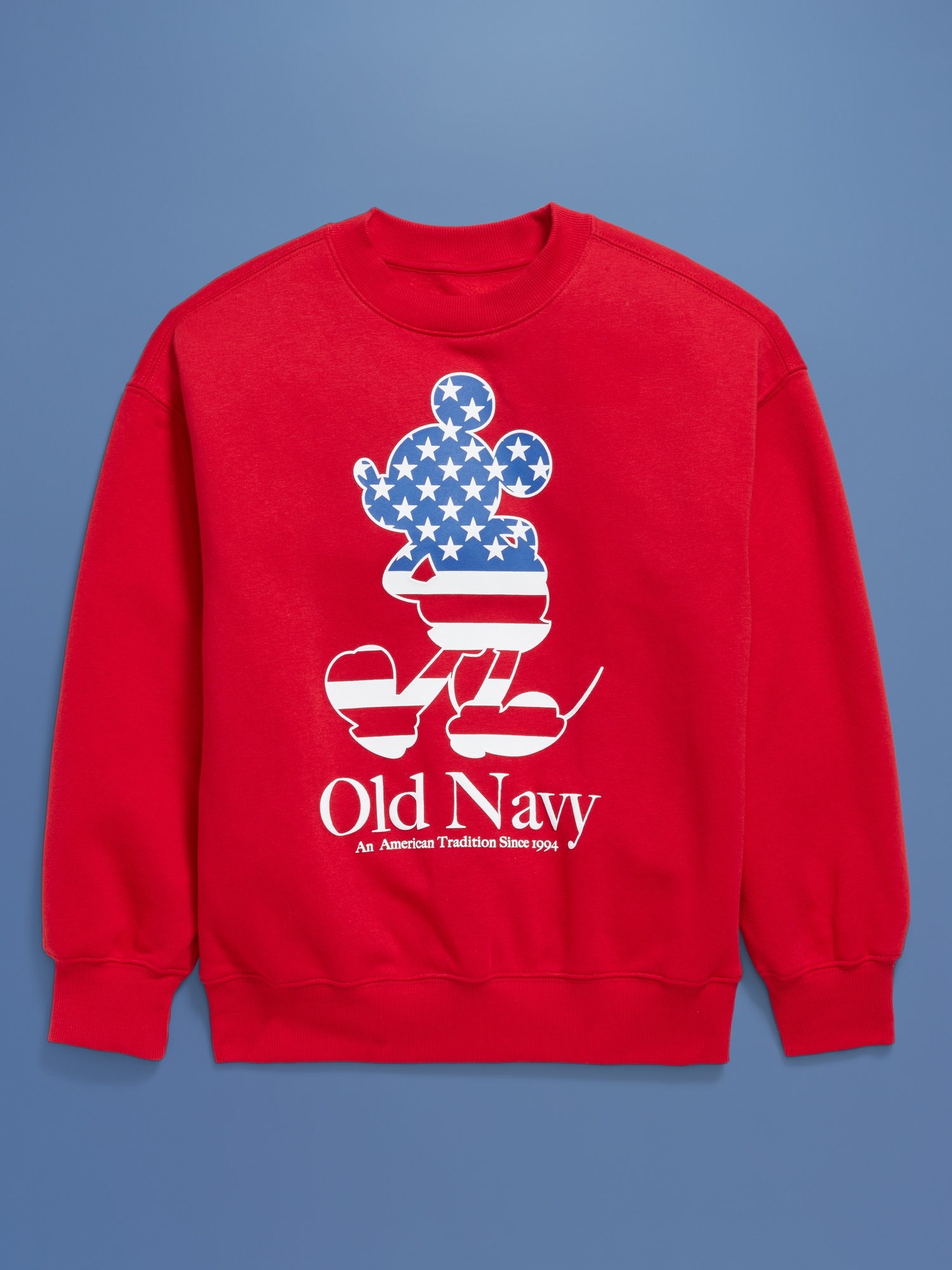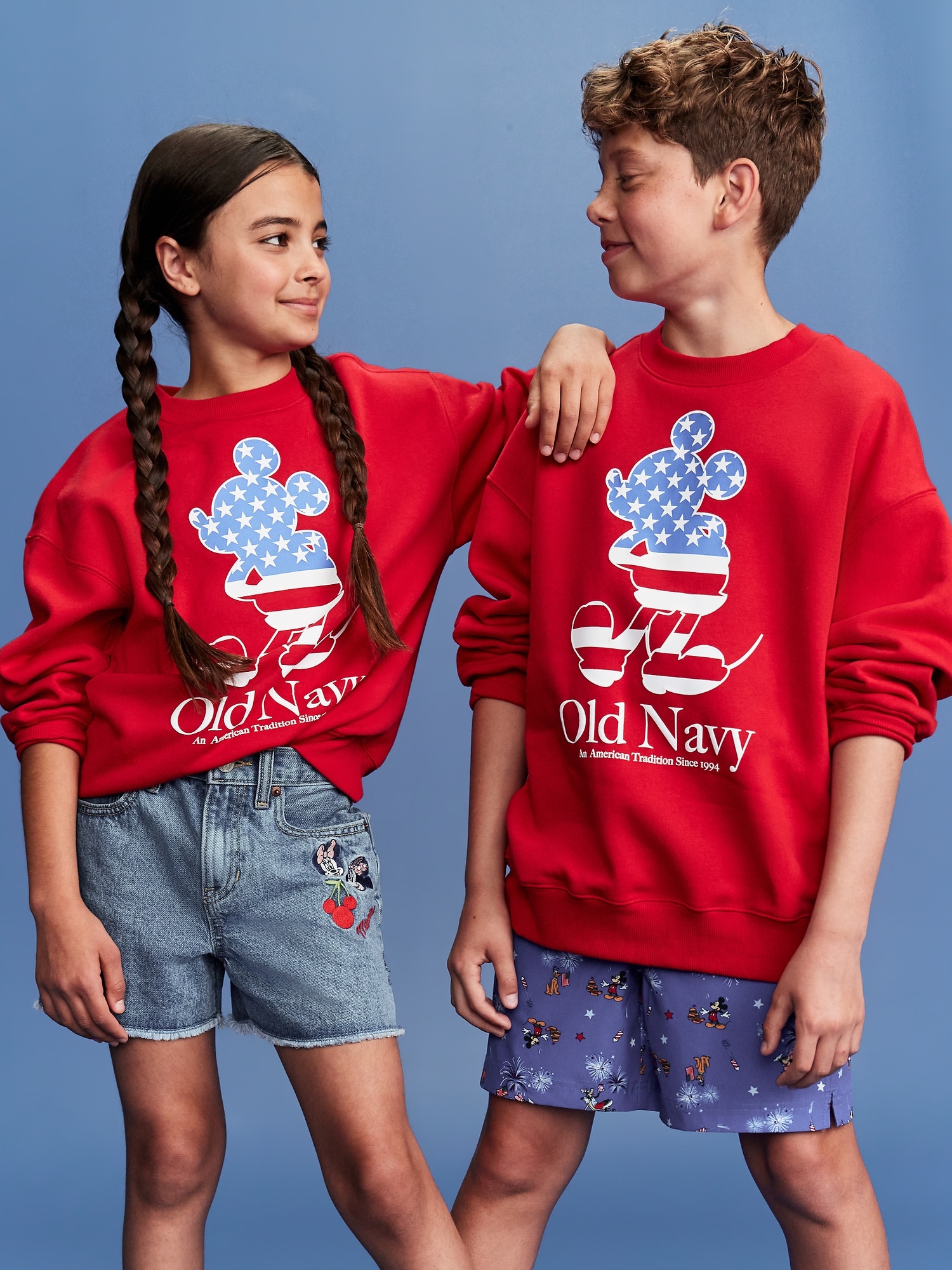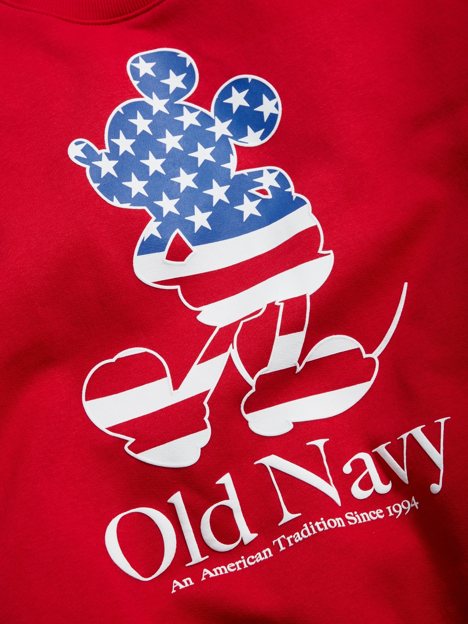 Old Navy x Disney© Mickey Mouse Flag Logo-Graphic Crew-Neck Sweatshirt for Boys: Two icons, together at last. Family matching for the crew!crew neck, short sleeves, drop shoulders, licensed graphic, banded hem, Disney©, #761752