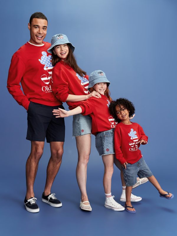 Old Navy x Disney© Mickey Mouse Flag Logo-Graphic Crew-Neck Sweatshirt for Boys: Two icons, together at last. Family matching for the crew!crew neck, short sleeves, drop shoulders, licensed graphic, banded hem, Disney©, #761752