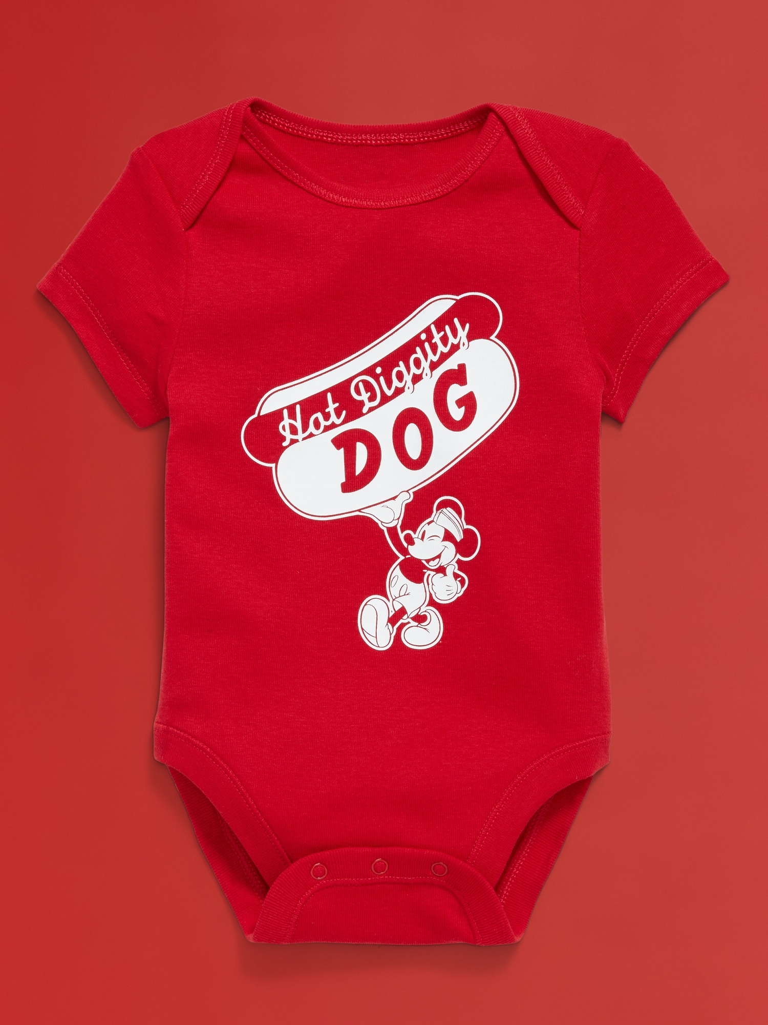 Old Navy x Disney© Mickey Mouse Graphic Bodysuit for Baby: Two icons, together at last. Family matching for the crew!rib-knit envelope neckline, short sleeves, snaps along inseam, licensed graphic, Disney©, #776474