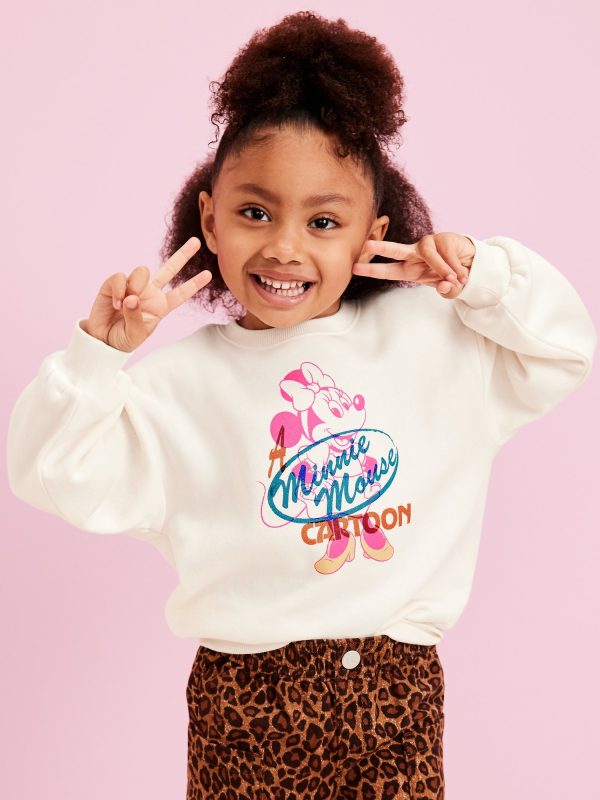 Old Navy x Disney© Minnie Mouse Crew-Neck Sweatshirt for Toddler Girls: crew neck, long sleeves, drop shoulders, licensed graphic, ribbed hem, Disney©, #762207