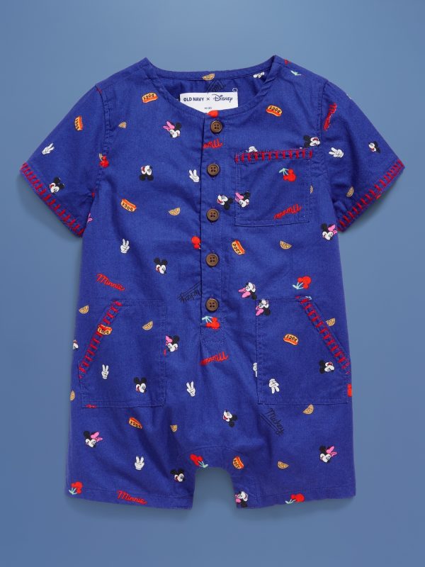 Old Navy x Disney© Poplin One-Piece Romper for Baby: Two icons, together at last. Browse the collection for the whole fam.rounded neckline, short sleeves, full length button placket, patch pocket at chest, diagonal utility pockets, hidden snaps at inseam, licensed graphic, ©Disney., #762099